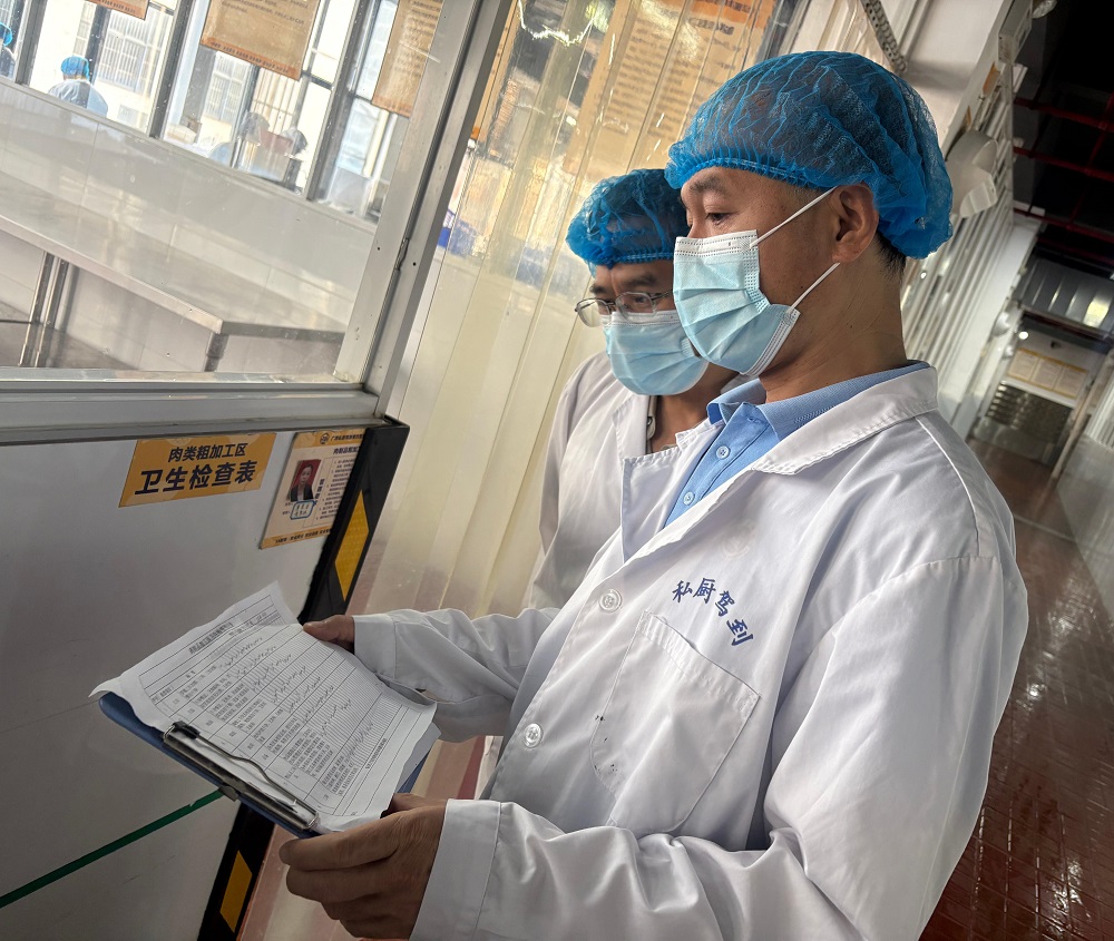 检查组以“全链条、无死角”为原则,深入配餐公司生产一线,重点核查消毒设备运行状态、工作区环境卫生与工作人员操作规范,细致检查食材储存区温湿度控制、分类存放情况,并逐一翻阅调料保质期与原材料采购验收记录,确保每个环节均严格对标国家食品安全标准,从源头把控餐食安全底线。现场交流环节,校企双方聚焦供餐质量提升深度对话。检查组立足学生健康成长需求,明确提出两项核心要求:一是细化菜品制作全流程管控,坚决杜绝预制菜进入学生餐供应链;二是完善食材采购、运输、处理全链条管理机制,将“新鲜”理念贯穿供餐全过程,实现安全与营养“双保障”。对此,配餐公司韦经理当场郑重承诺,将第一时间整改检查反馈问题,100%杜绝预制菜使用,并根据学生反馈优化菜品搭配、烹饪工艺与营养配比,全力满足学生饮食健康需求。