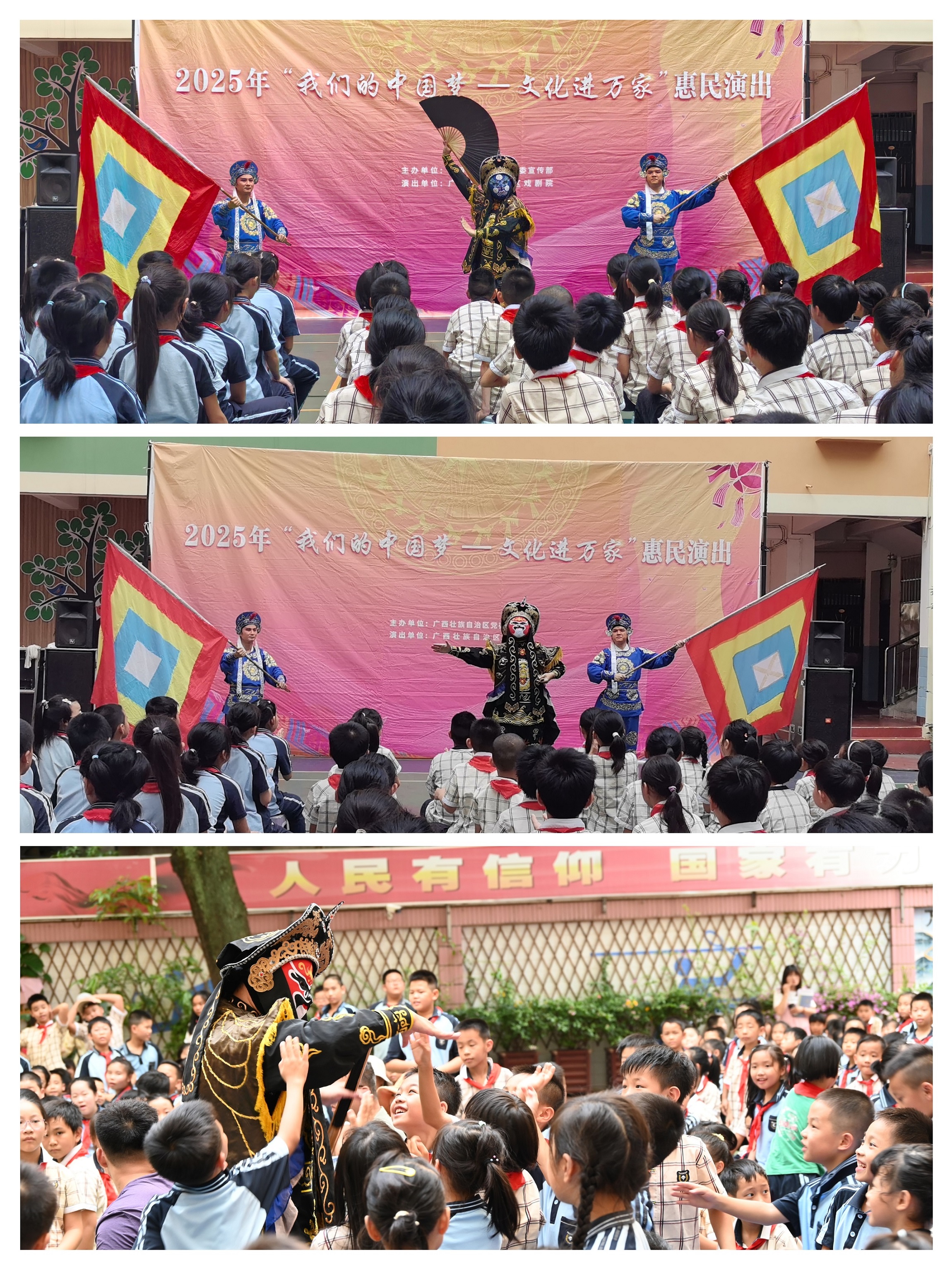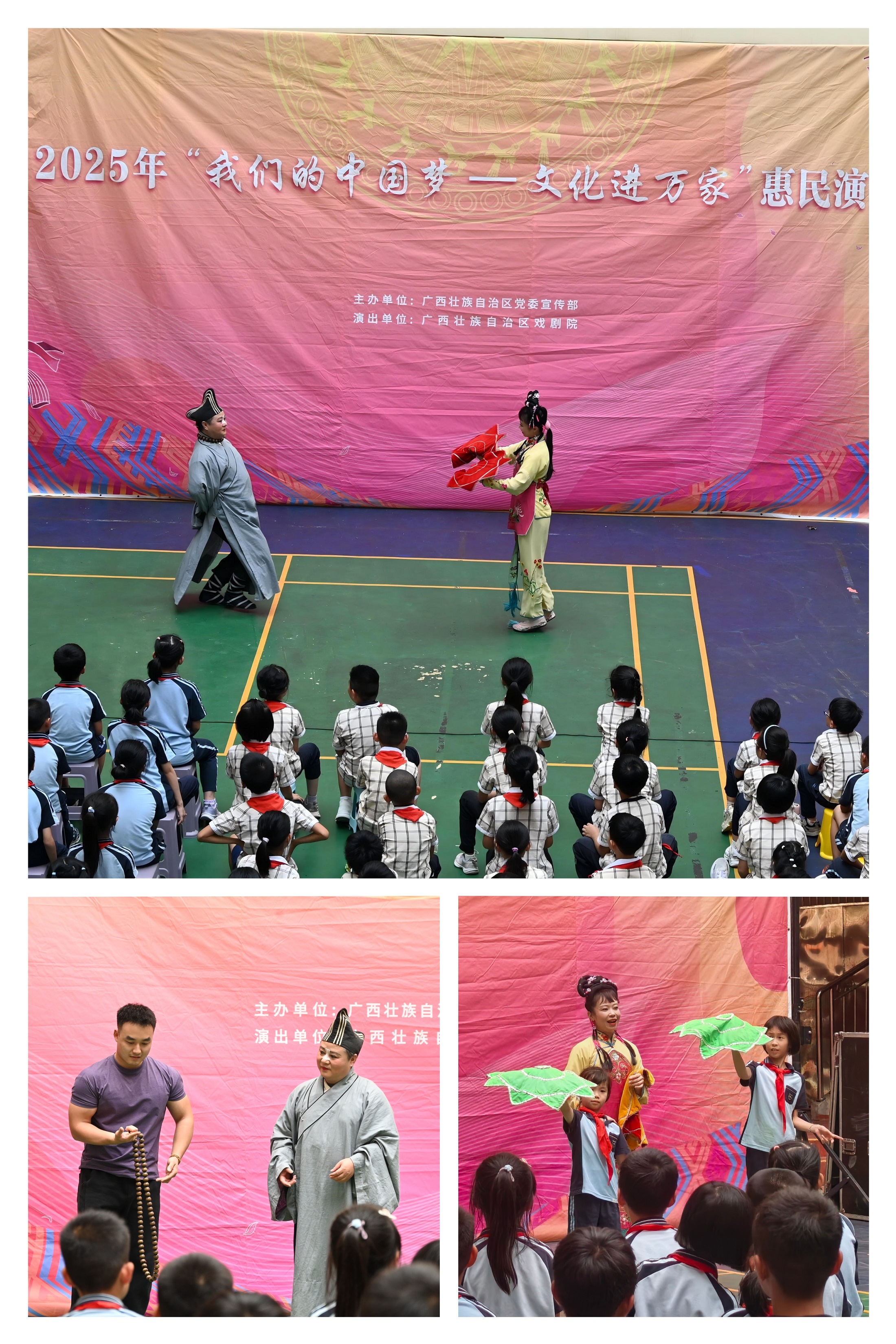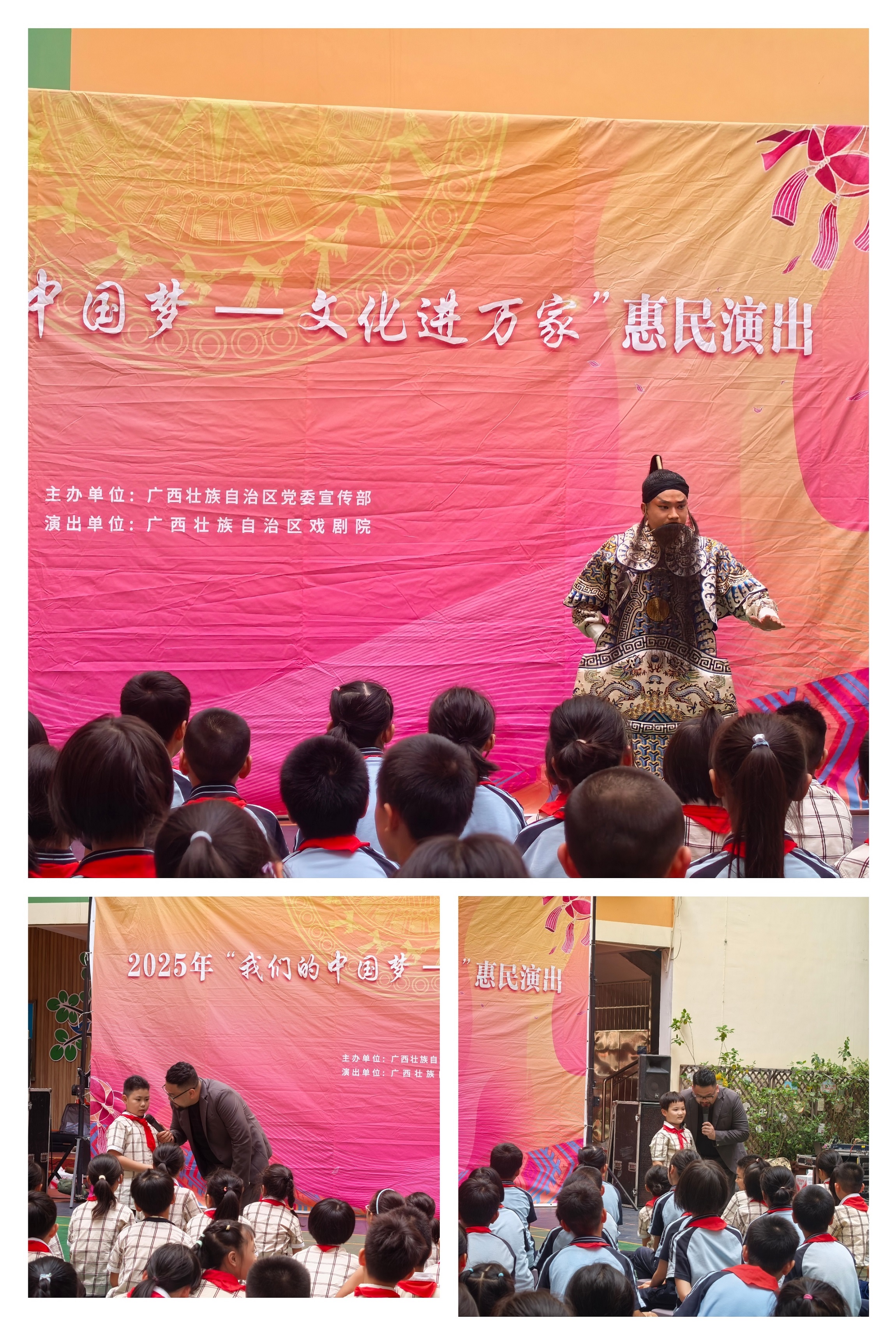 10月9日下午,广西戏剧院桂剧团以“我们的中国梦——文化进万家”为主题的惠民演出走进我校附属小学,为同学们带来一场精彩的沉浸式桂剧文化盛宴,让孩子们近距离感受国家级非物质文化遗产的独特魅力,在心中播下传承传统文化的种子。