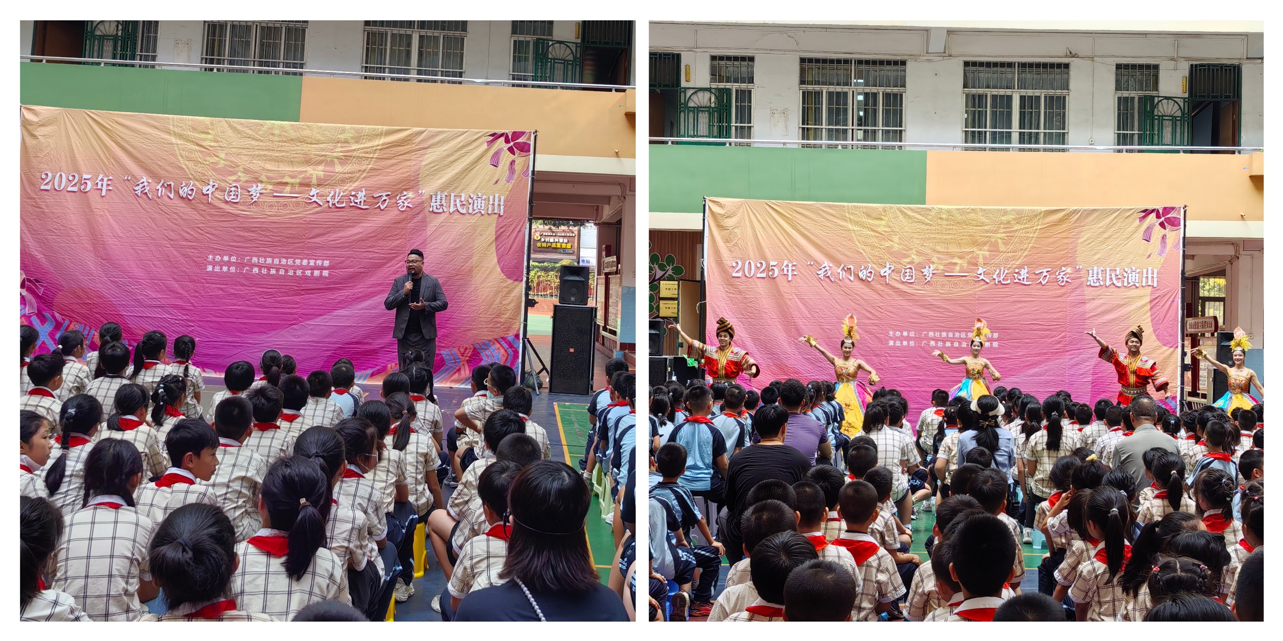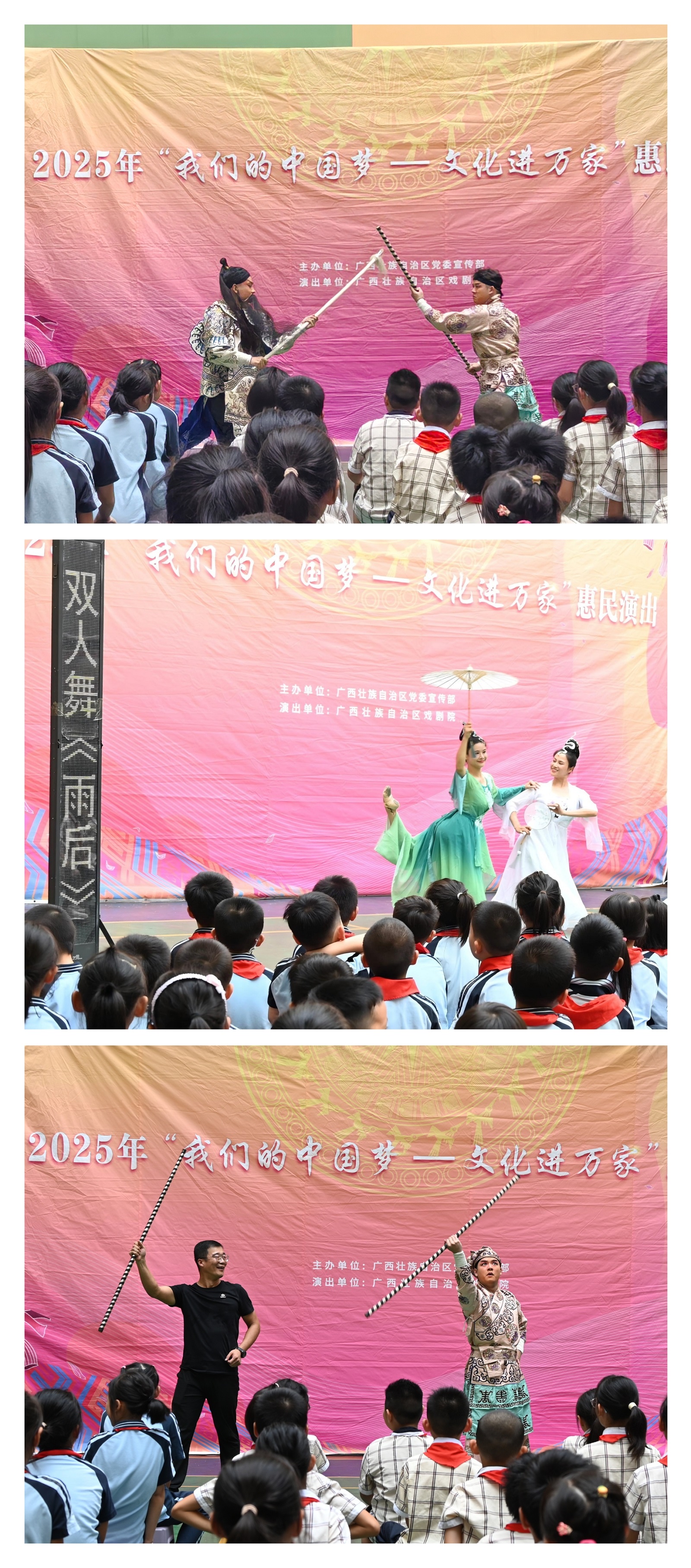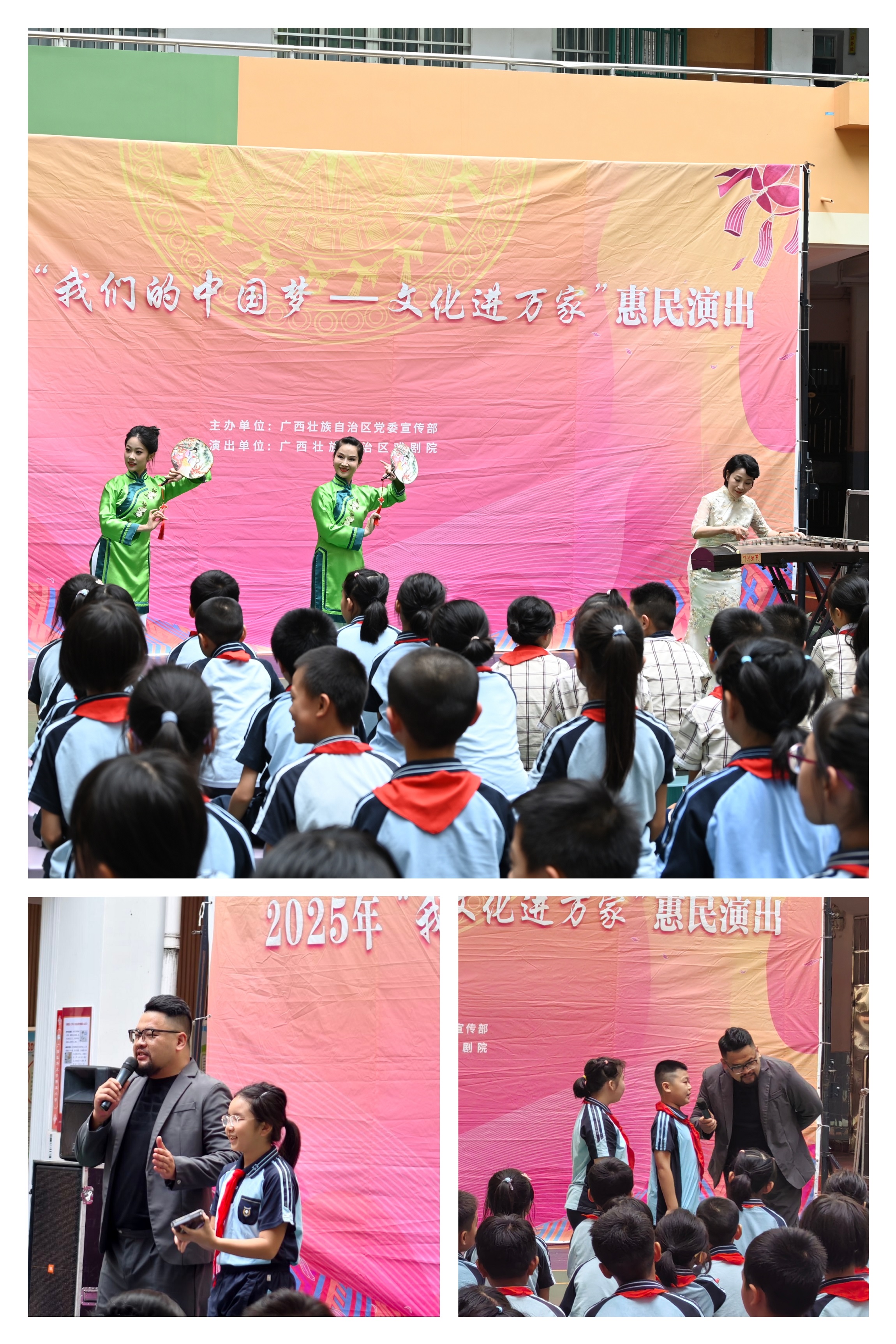 10月9日下午,广西戏剧院桂剧团以“我们的中国梦——文化进万家”为主题的惠民演出走进我校附属小学,为同学们带来一场精彩的沉浸式桂剧文化盛宴,让孩子们近距离感受国家级非物质文化遗产的独特魅力,在心中播下传承传统文化的种子。