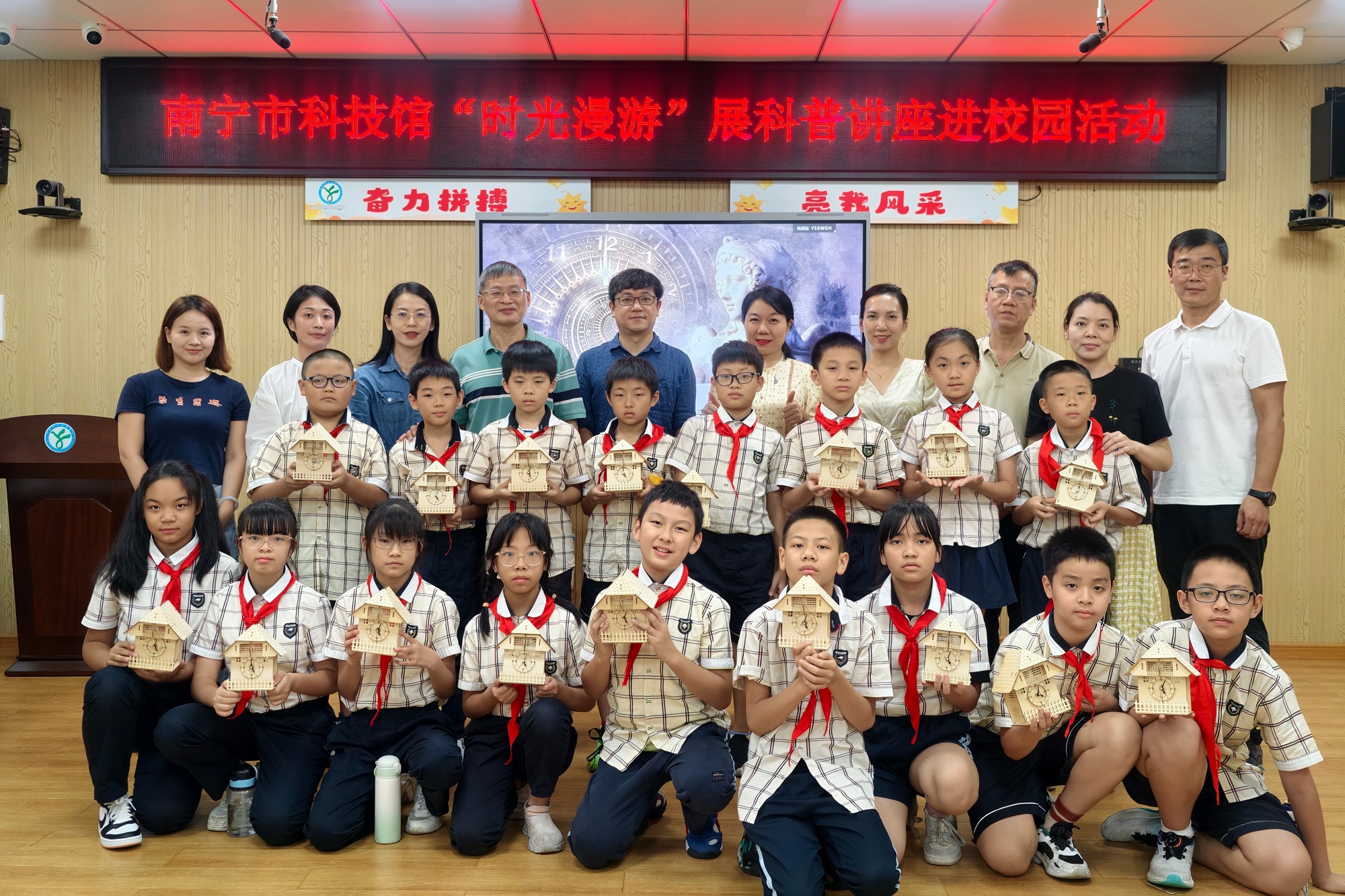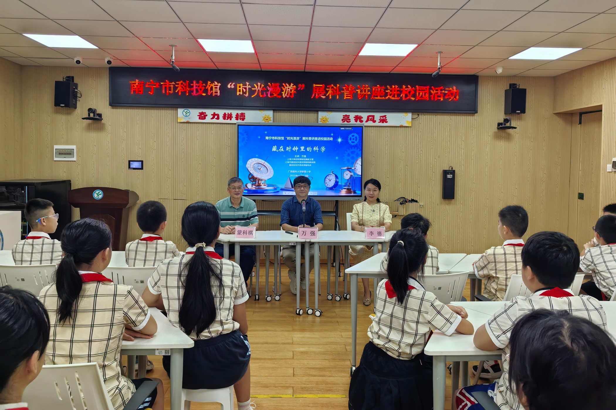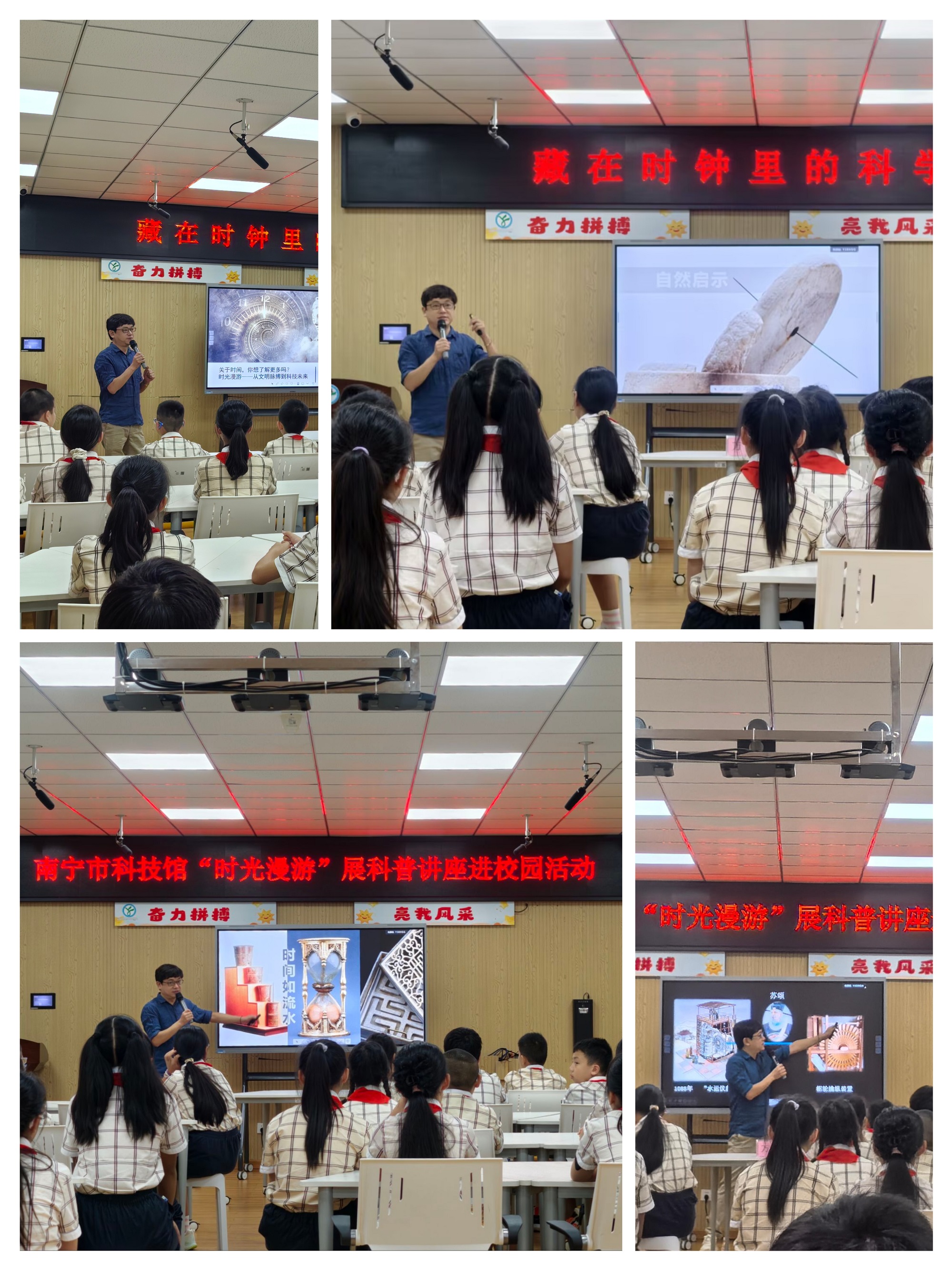 附小一直将学生科创能力的培养放在教育教学的重要位置,不断搭建多元化平台,让科学精神在孩子们心中生根发芽。近日,学校特别邀请南宁市科技馆带来“提升全民科学素质 夯实科技强国基础”——时光漫游系列科普讲座,以“藏在时钟里的科学”为主题,为同学们开启了一扇探索时间本质与计量智慧的大门。