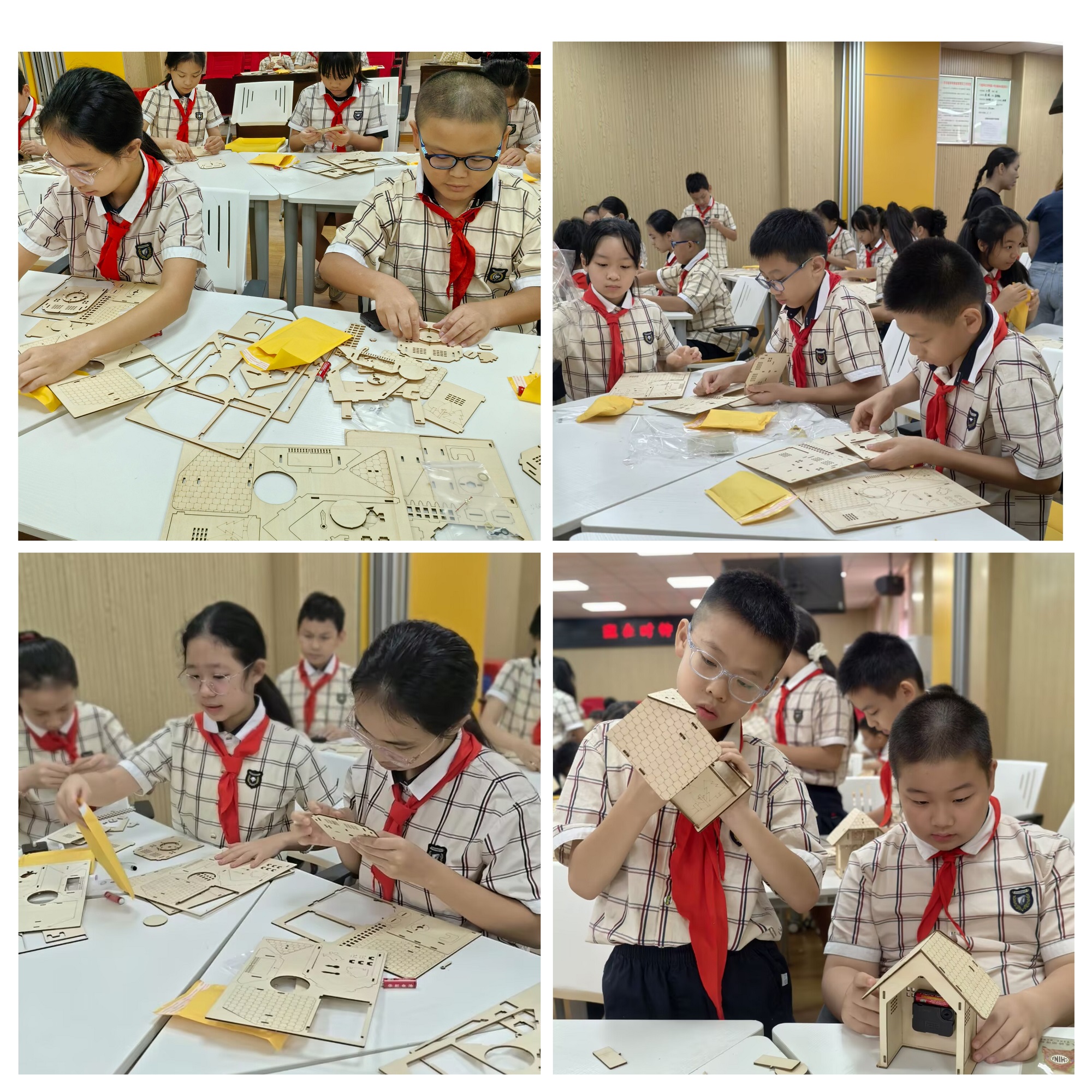 最让同学们兴奋的莫过于课堂上的动手环节。在老师的指导下,大家拿起上海大来时间博物馆专属文创——“摇摆钟”DIY 材料包,认真拼装。活动过程中,同学们充分发挥创造力与动手能力,遇到问题时互相讨论、共同解决,课堂里充满了欢声笑语。当一个个摇摆钟成功运转时,孩子们脸上洋溢着满满的成就感,也将这段探索时间的难忘记忆永远珍藏。