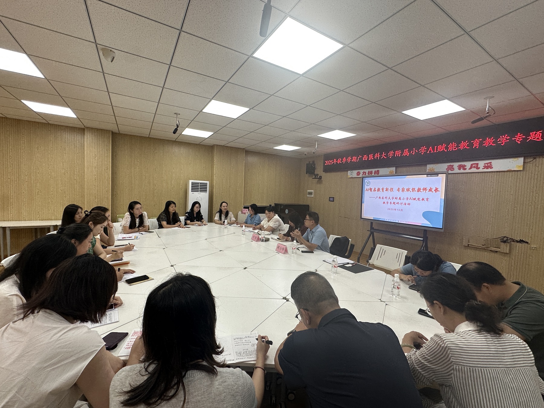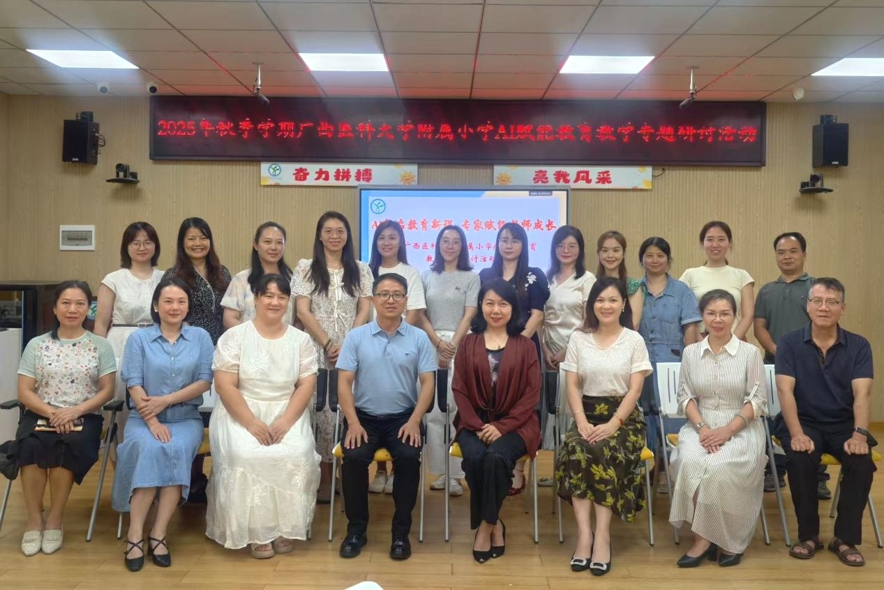 秋启新程,智育未来。为深入探索AI技术与小学教育教学的深度融合路径,破解实践中的共性困惑,推动学校教育信息化高质量发展,近日,我校附属小学隆重举办“AI智启教育新程 专家赋能教育成长”AI赋能教育教学专题研讨交流会。广西教育技术和信息化中心规划部柯小华部长莅临指导,附小骨干教师齐聚一堂,共赴这场聚焦教育创新的思想盛宴。
