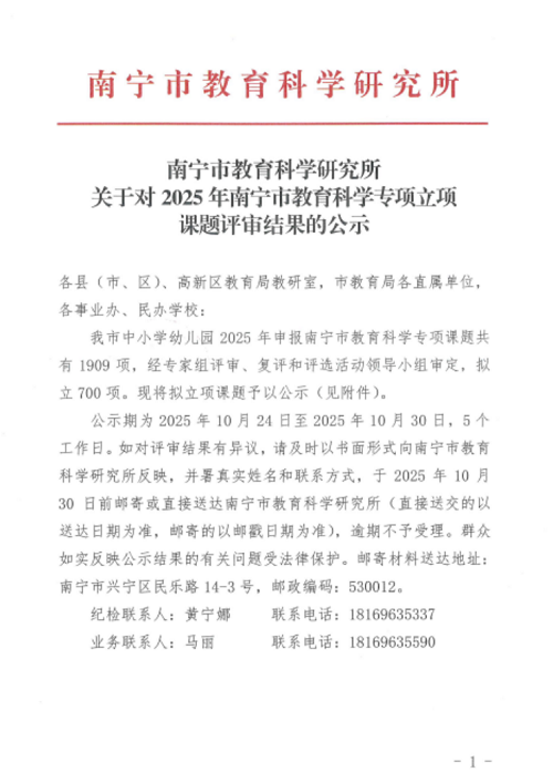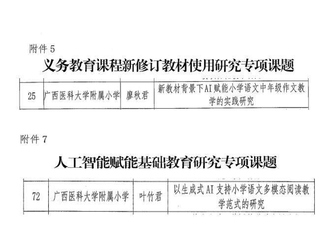 热烈祝贺我校附小教师申报的课题获2025年南宁市教育科学专项课题立项!