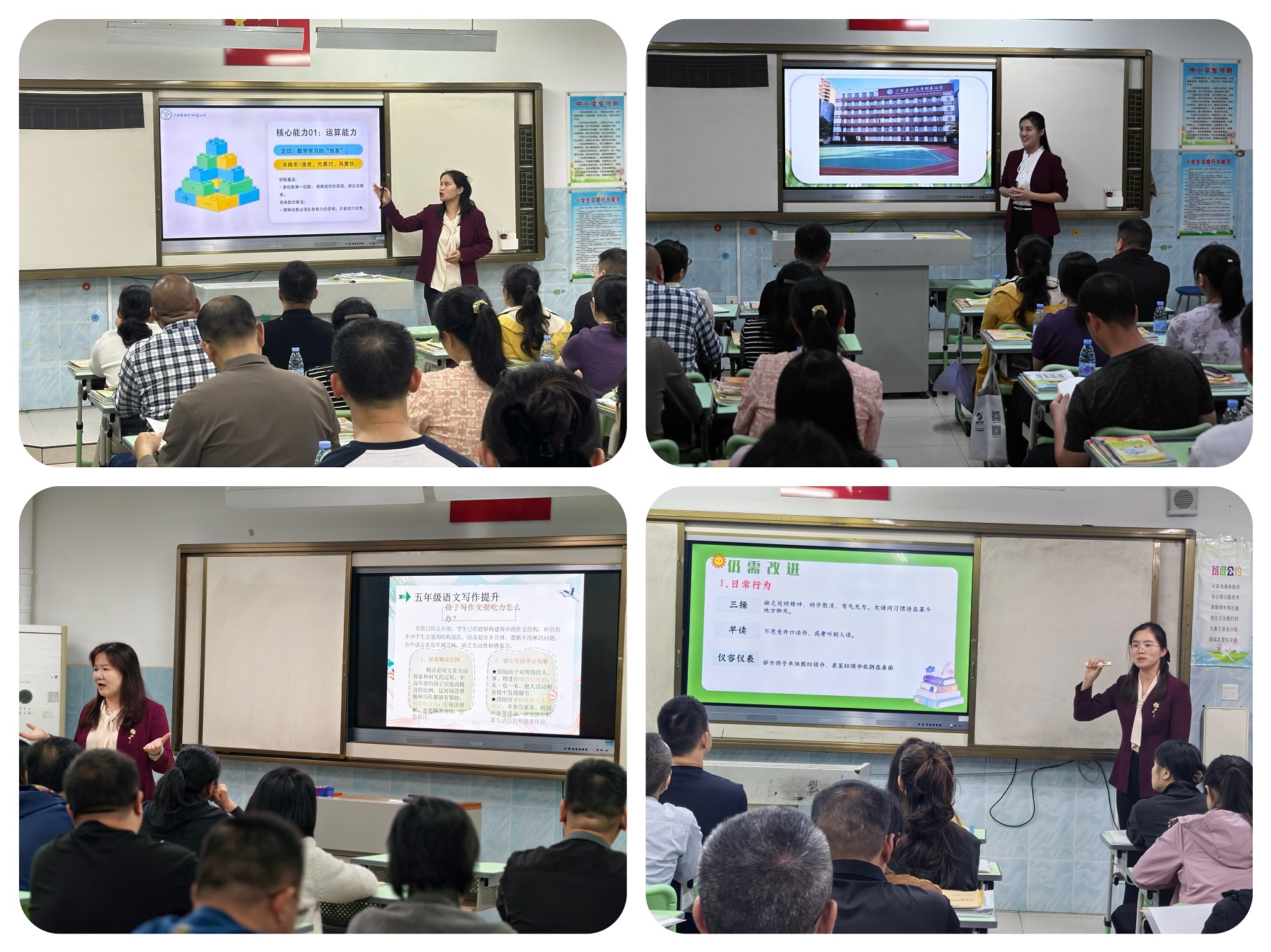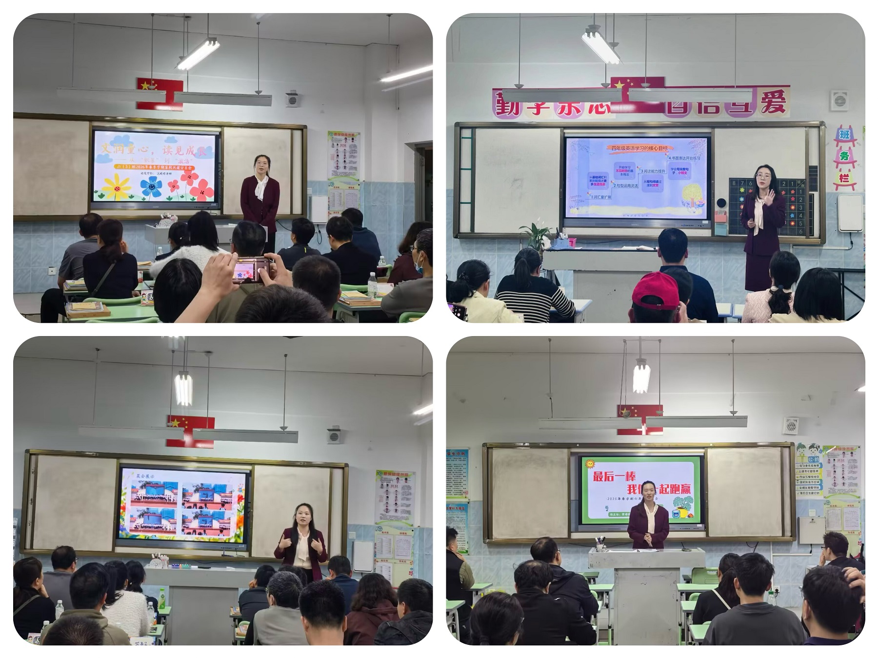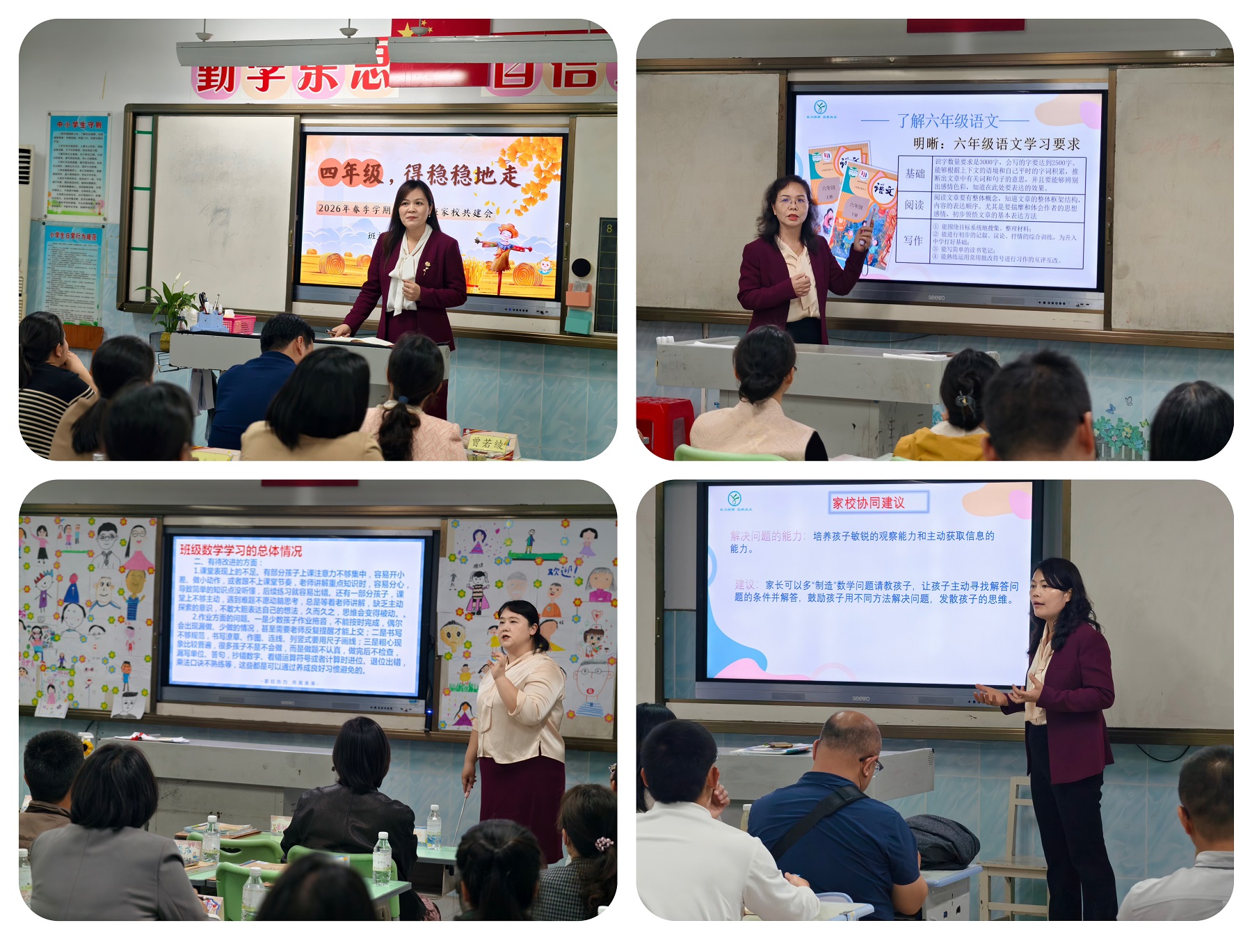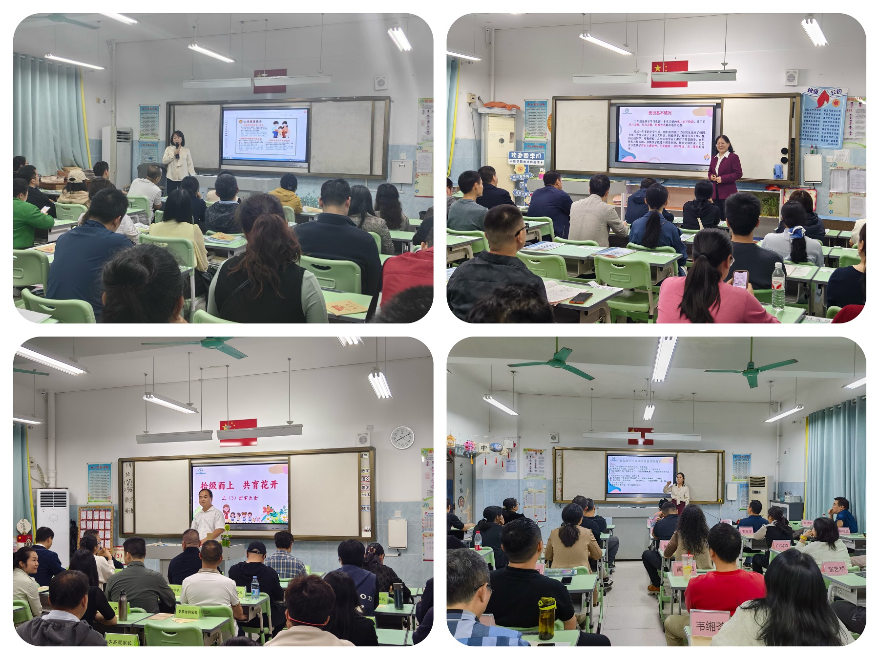 “校长学堂”结束后,各班有序开展班级家长会。老师们通过“图文+视频”的形式,向家长生动展示学生在校的精彩瞬间——从课堂上的跨学科项目式学习探究、课间的活力运动,到科技节的创意实践、少先队的志愿服务,每一张照片、每一段视频都饱含着孩子们的成长印记。交流过程中,班主任立足学生身心特点,针对不同年段学生身心特点,结合班级管理理念、心理健康关怀、校园安全保障等方面进行细致讲解,针对不同学生的个性特点,与家长一对一沟通孩子的学习状态与发展潜力。各学科任课教师则结合新课标落地要求,从学习的前置性作业、课后作业优化规范、跨学科学习方法等角度,为家长提出切实可行的建议,助力家长配合学校做好家庭辅导,形成“家校共育学科闭环”。