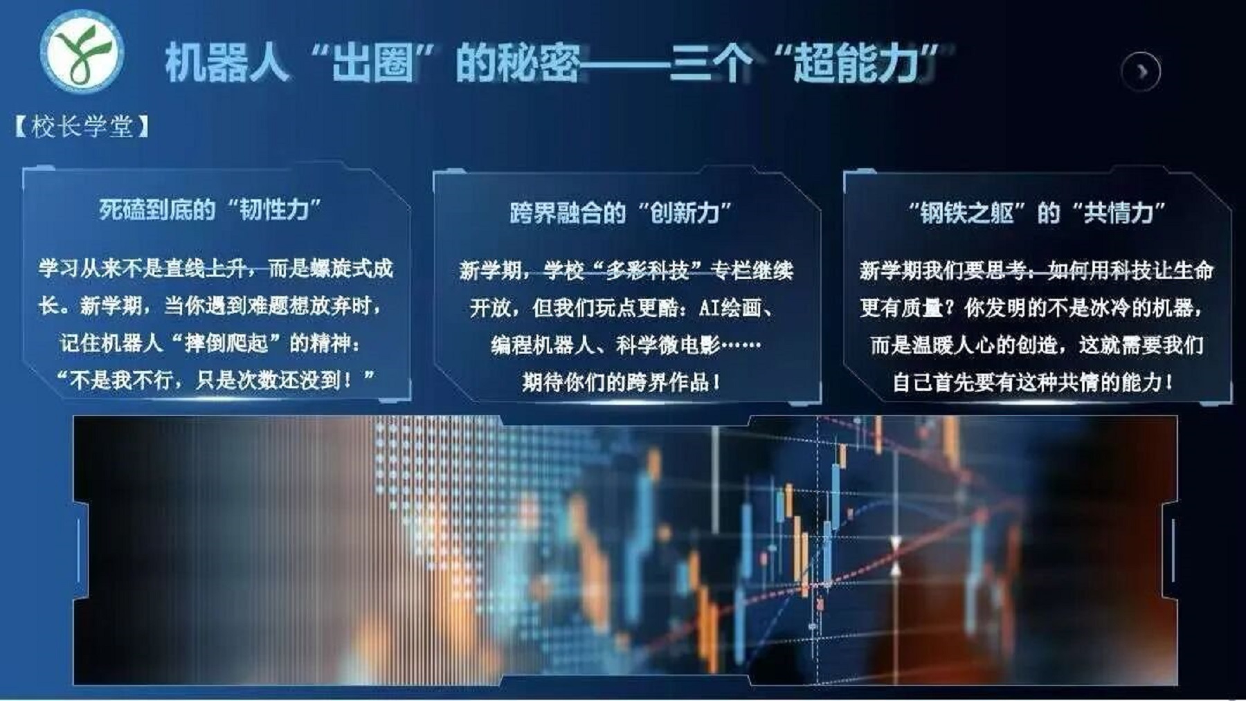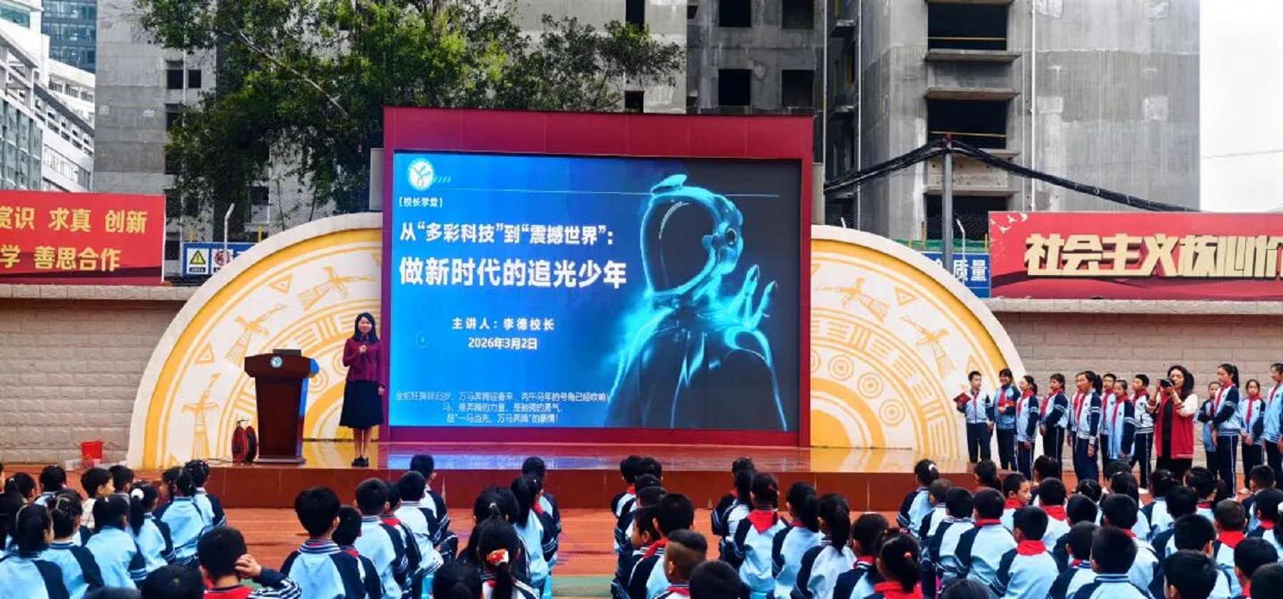 附小李德校长在开学典礼上开设“校长学堂”,为全体师生带来一堂生动的科技思政课。课程以“从‘多彩科技’到‘震撼世界’:做新时代的追光少年”为主题,将生命教育与科学素养深度融合。课堂上,李校长通过引入春晚人形机器人武术表演,结合附小学生寒假期间的科技探索实验视频,生动诠释了“做中学,学中创”的教育理念。她深入拆解了机器人“出圈”背后的三个核心能力:一是面对困难不退缩的韧性力,二是突破常规敢探索的创新力,三是心怀感恩暖人心的共情力。基于这三大能力,李校长向全体同学发出新学期行动倡议: