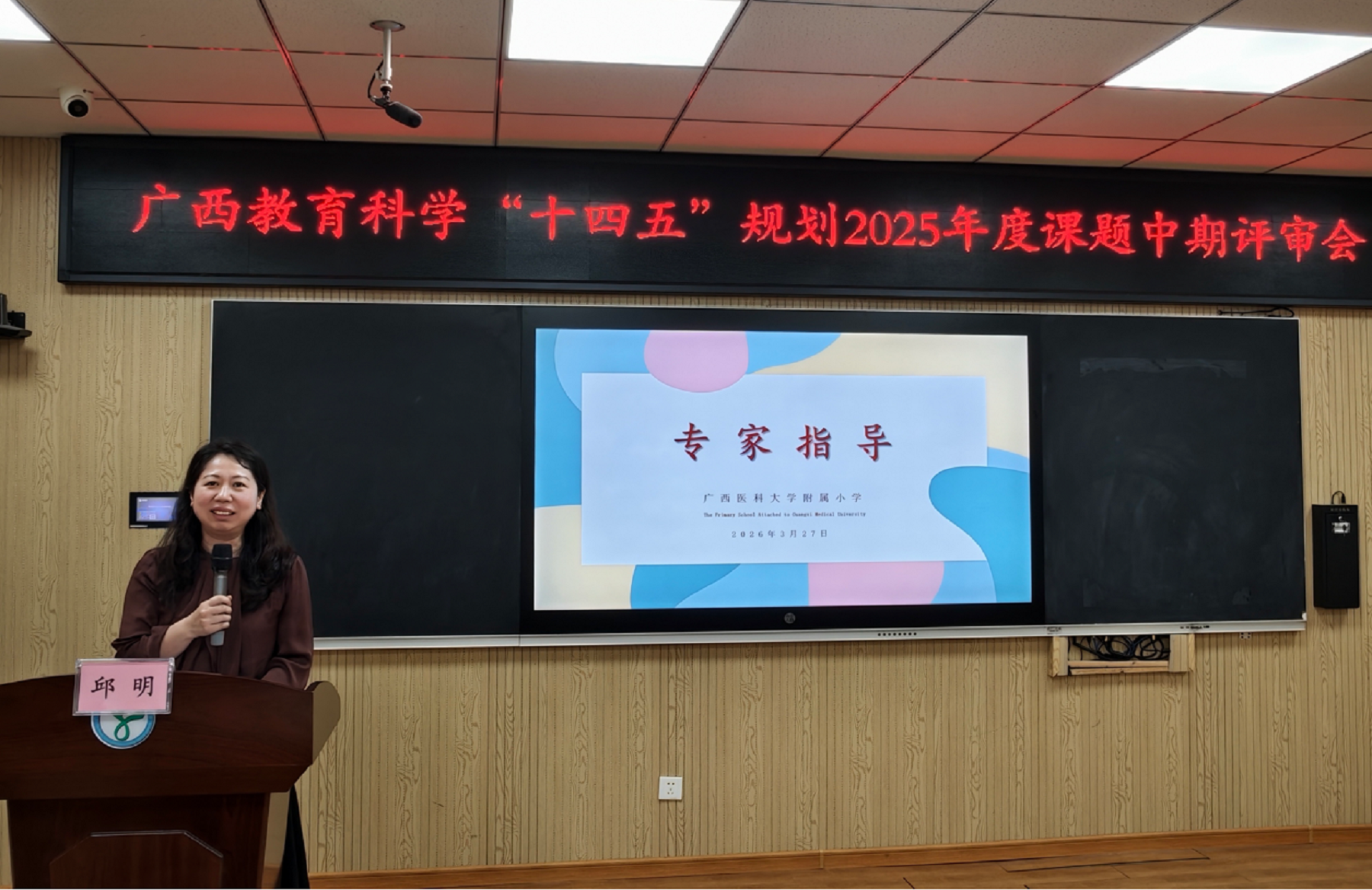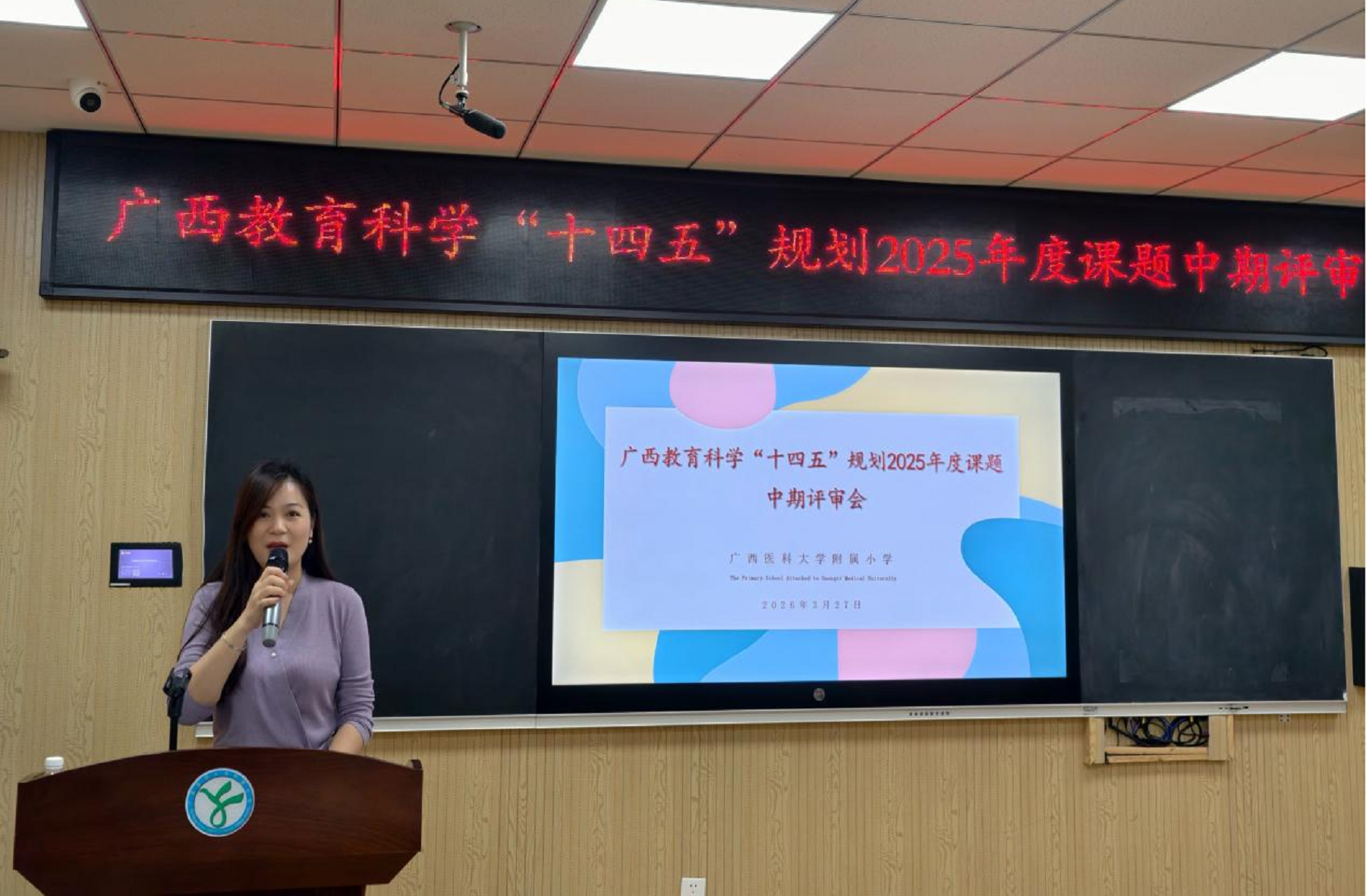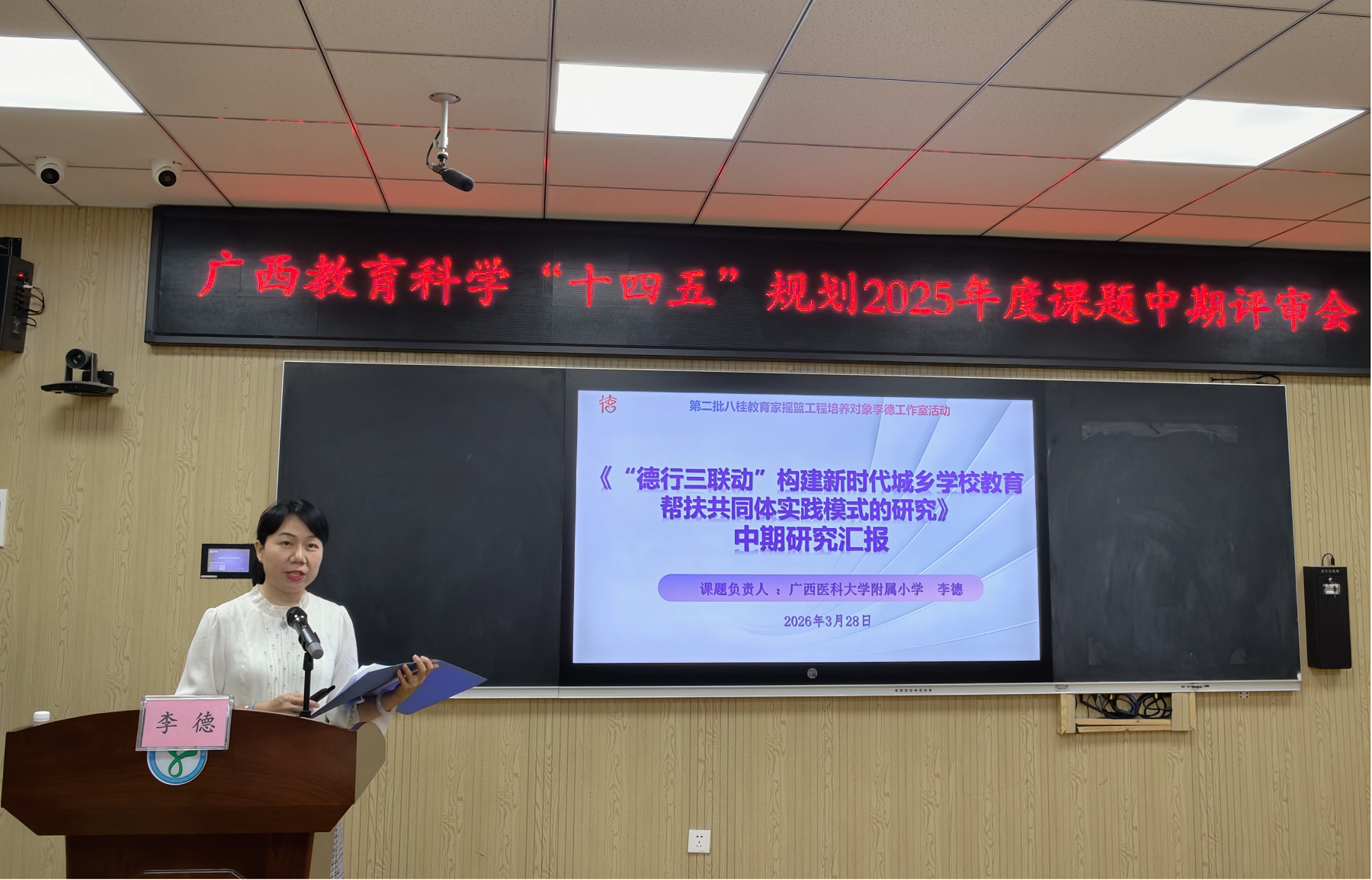 为扎实推进广西教育科学“十四五”规划自筹经费重点课题研究工作,精准把控研究方向、破解实践难题,切实提升课题研究质量与实践价值,2026年3月27日,“‘德行三联动’构建新时代城乡学校教育帮扶共同体实践模式的研究”课题中期评审会顺利召开。本次评审会特邀教育领域资深专家组成评审组,对课题中期研究成果与推进情况进行全面论证、专业指导,课题负责人附小李德校长及课题组成员参会,会议严格按照既定流程有序开展。