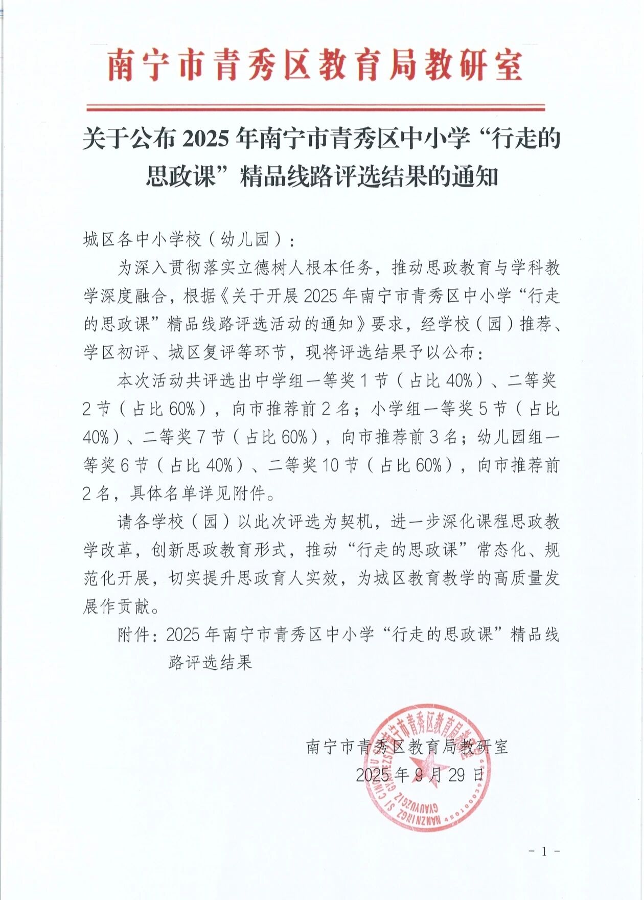 热烈祝贺我校幼儿园教师团队在2025年南宁市青秀区中小学“行走的思政课”精品线路评选中取得优异成绩!