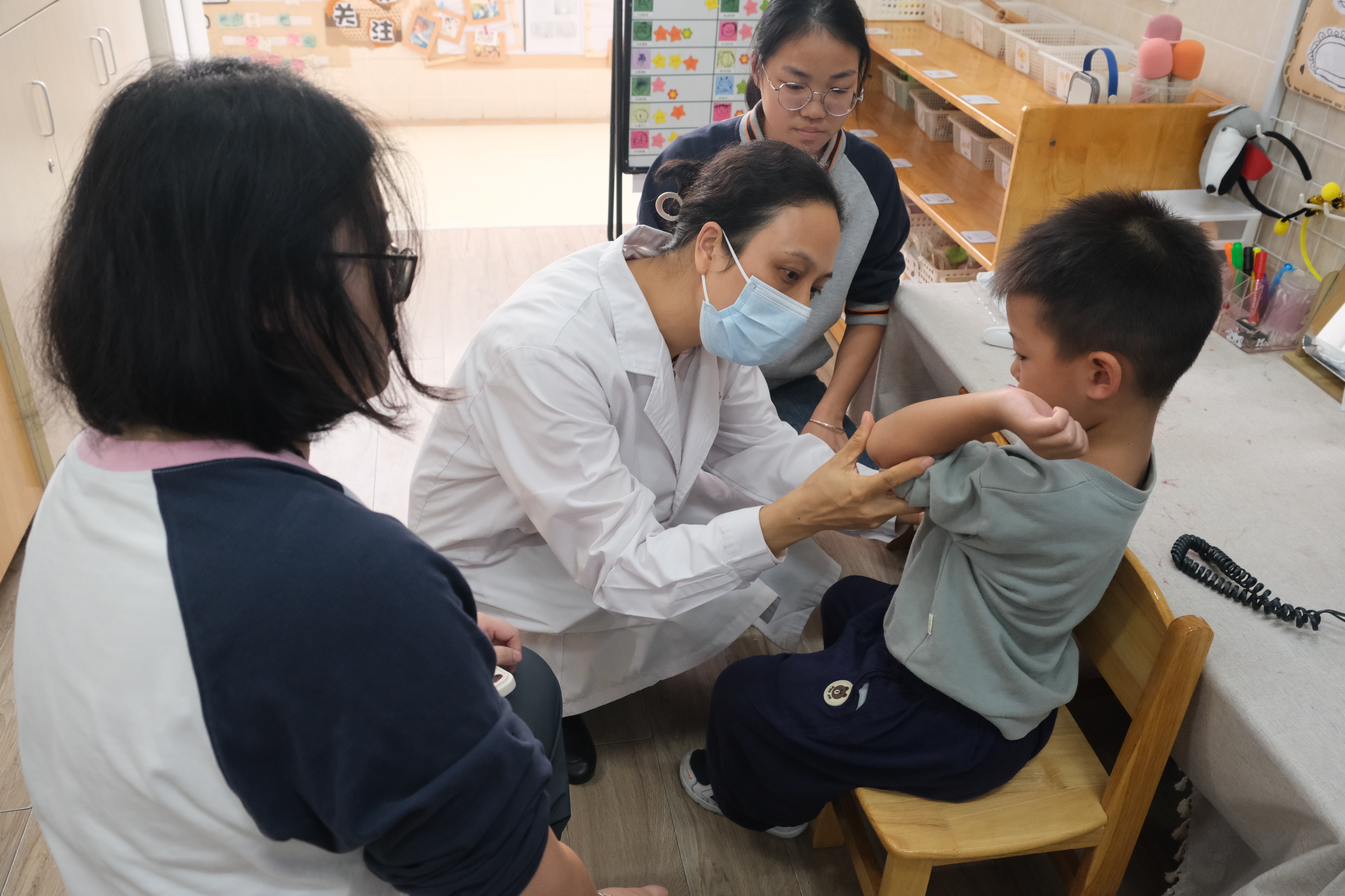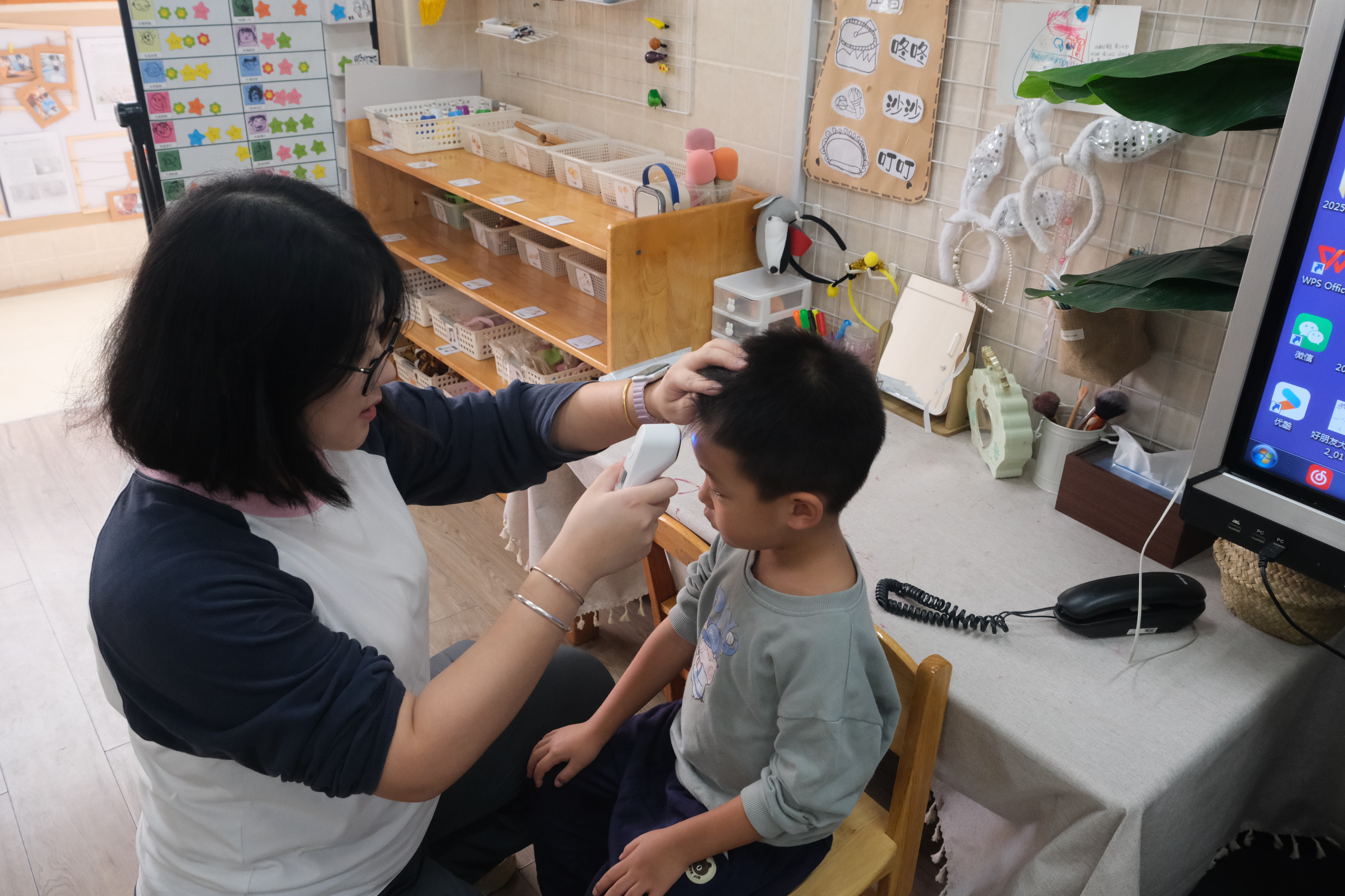 曾炜书记接报后,宣布启动幼儿园传染病防控应急预案。保健医生为幼儿佩戴口罩,将其护送至隔离观察室,进行进一步检查并记录症状。