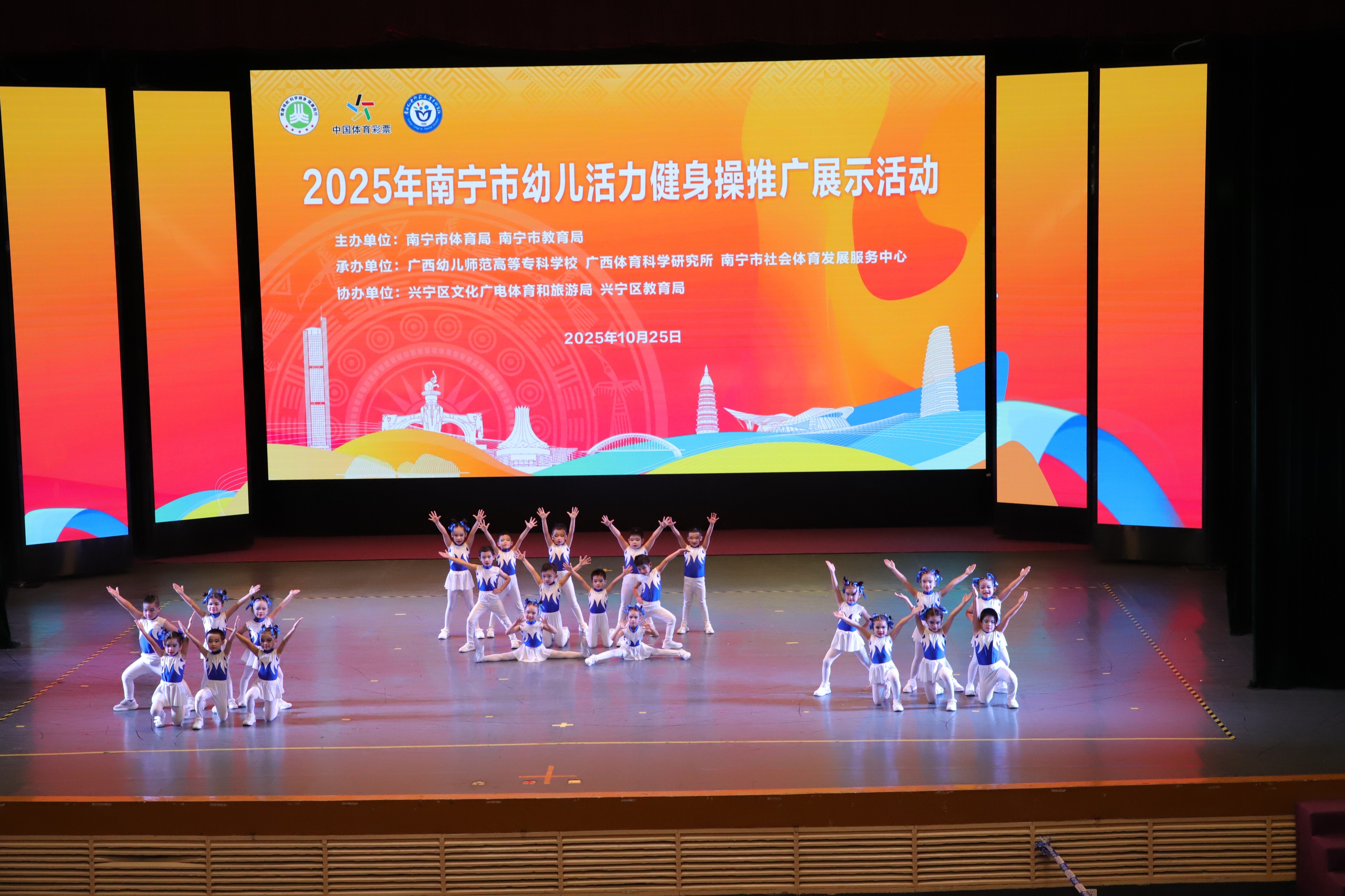 10月25日,我校幼儿园由24名幼儿与14名教师组成的代表队,参加了此次南宁市活力健身操推广展示活动。在“规定操”项目中,孩子们精神抖擞、动作整齐,展现出良好的体育素养与童真活力;