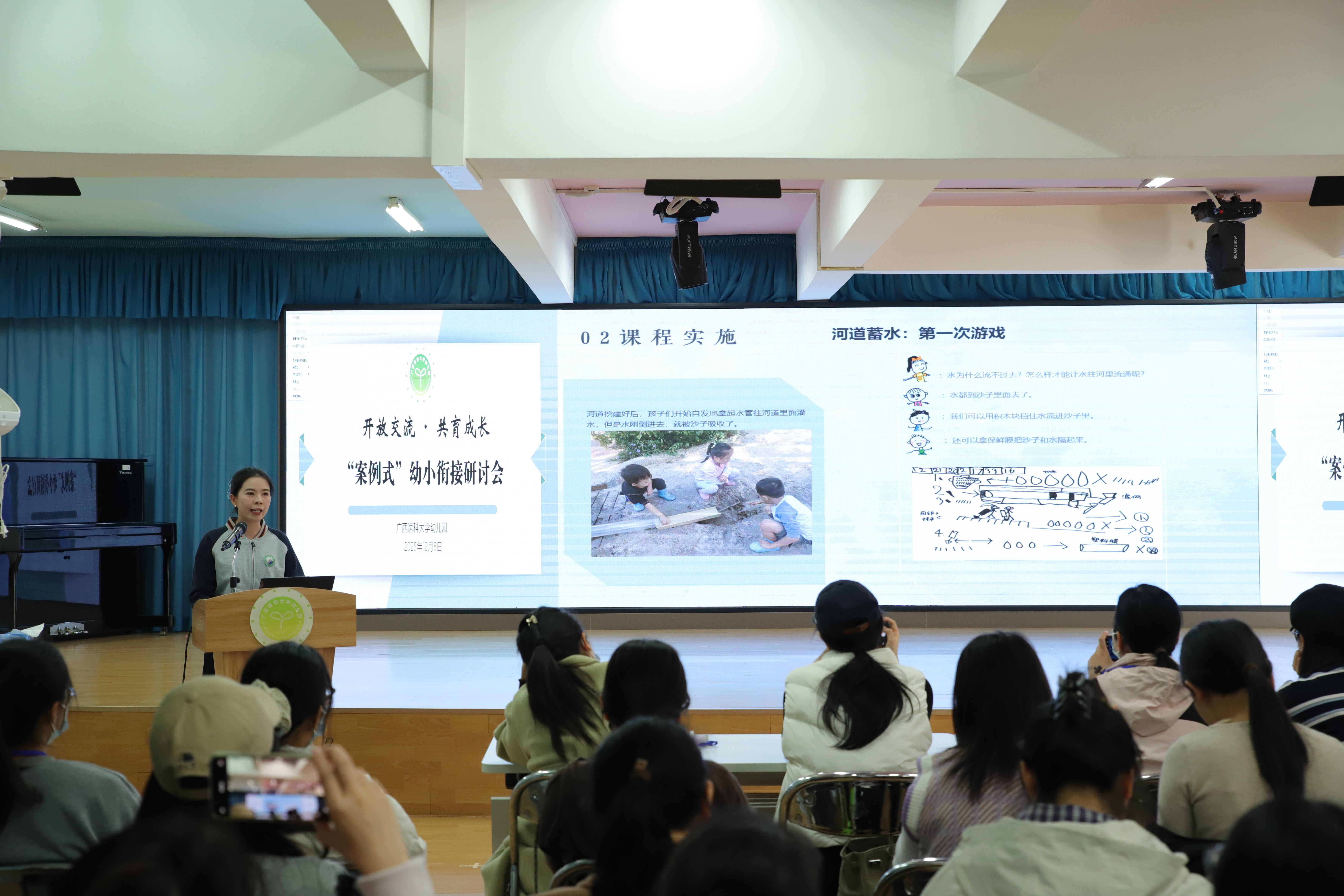 家园协同方面,通过任务单、专题家长会、亲子实践等形式,引导家长参与衔接并更新教育观念。其中,大班以“平陆运河”为主题的项目化学习成为突出亮点。幼儿在教师搭建的学习支架下开展探究,整合家园社多方资源,在解决真实问题的过程中提升综合能力,实现特色课程与衔接目标深度融合。该案例在研讨会中由姚姗希老师专项分享,陈娟副园长引导现场观摩,获得与会者一致好评。