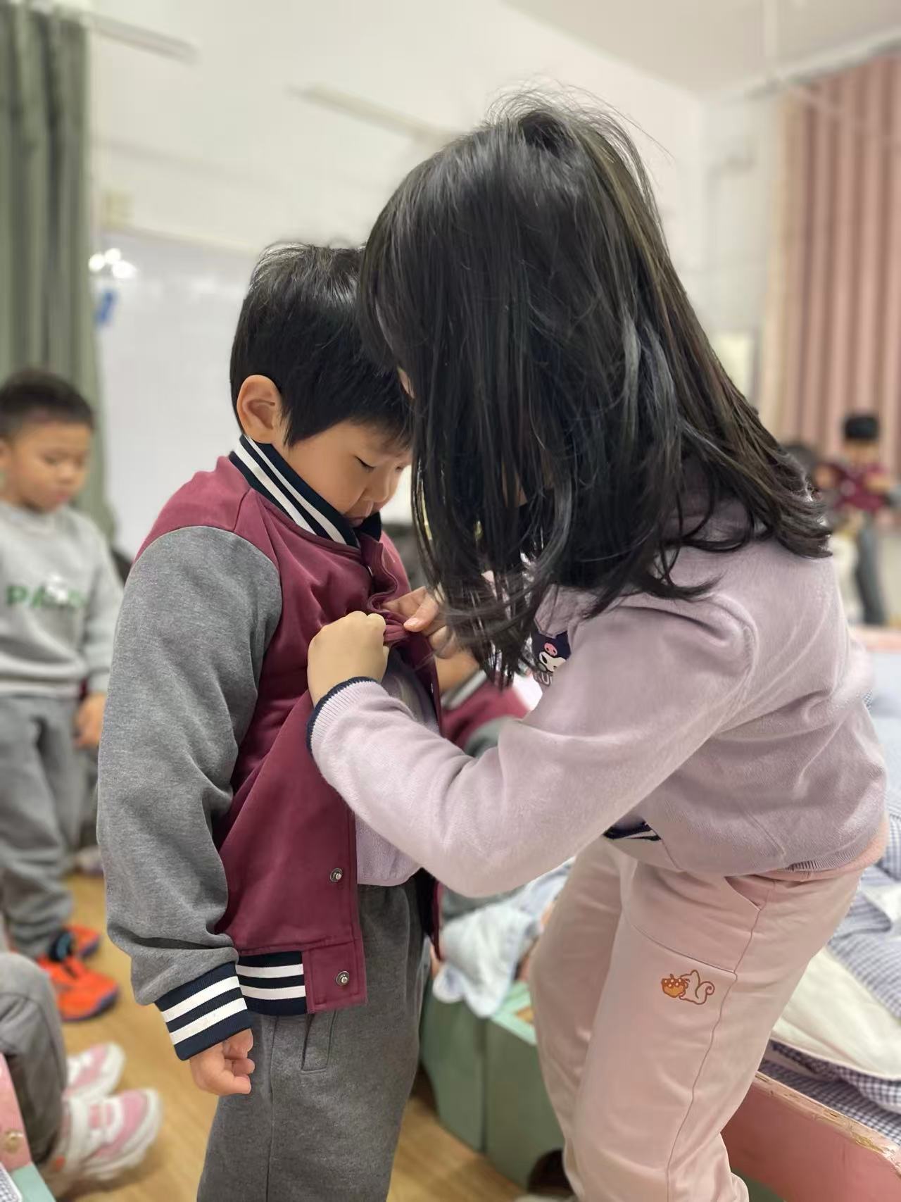耐心教他们叠被子、整理衣物一句句温柔的鼓励,一次次贴心的帮助,让 “互帮互助” 在校园里悄悄传递。
