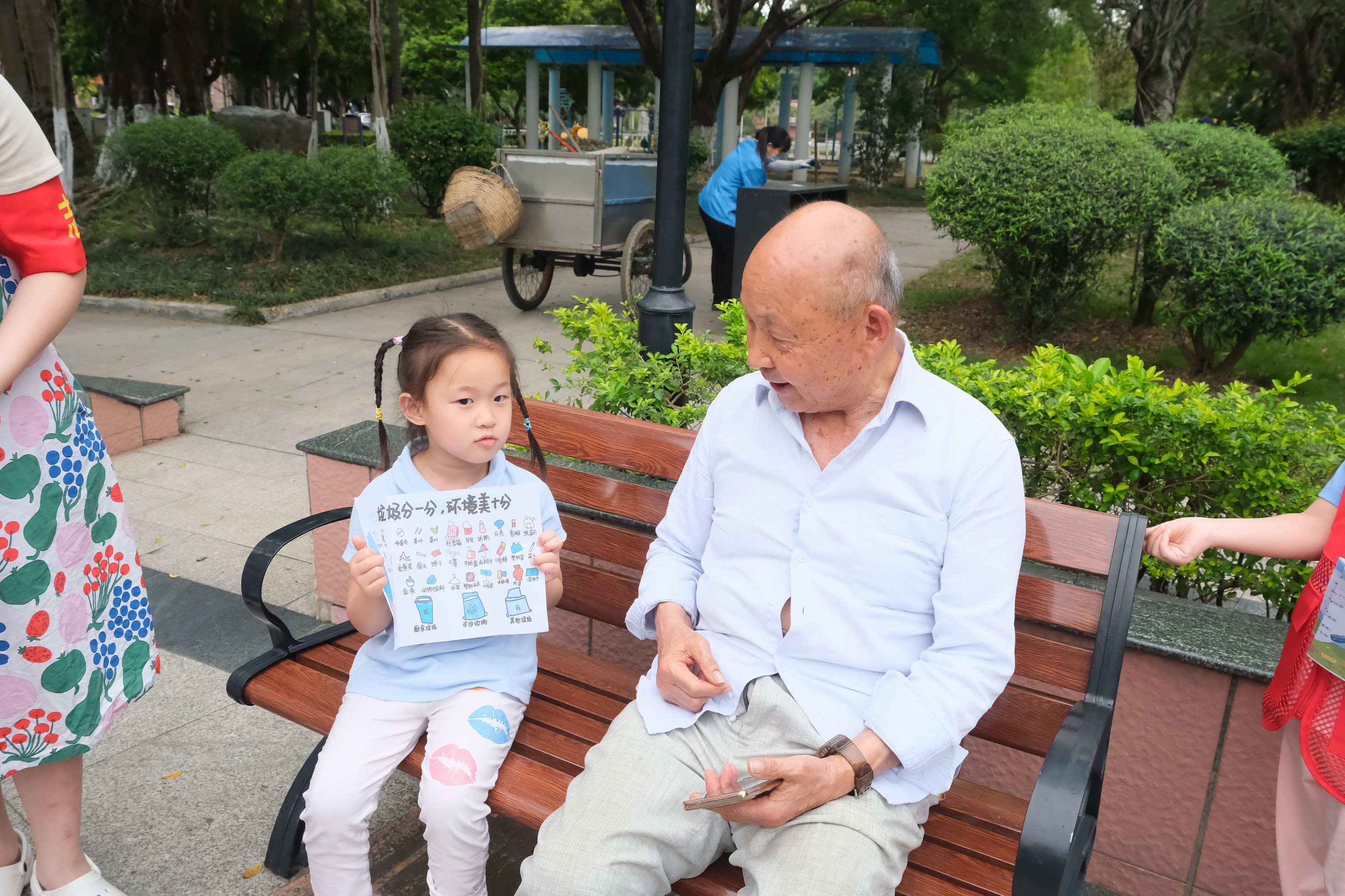 孩子们带着满满的热情走进社区,开展“垃圾分类我先行”主题宣传实践活动。他们化身小小宣传员,在老师的带领下宣传垃圾分类知识,体验分类投放,用稚嫩的声音向社区人员宣传环保理念。