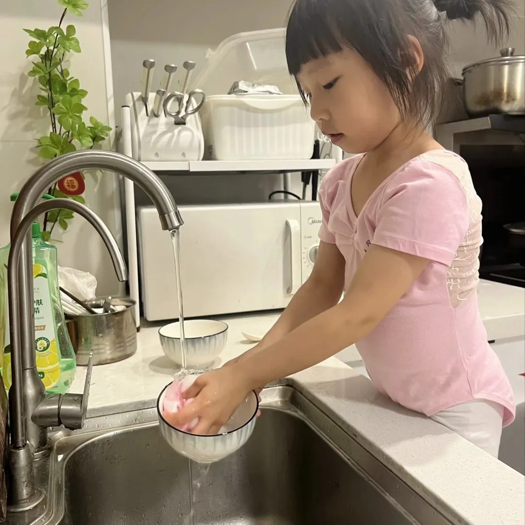 勤劳友爱:主动扫地、擦桌、洗碗,分担家务;