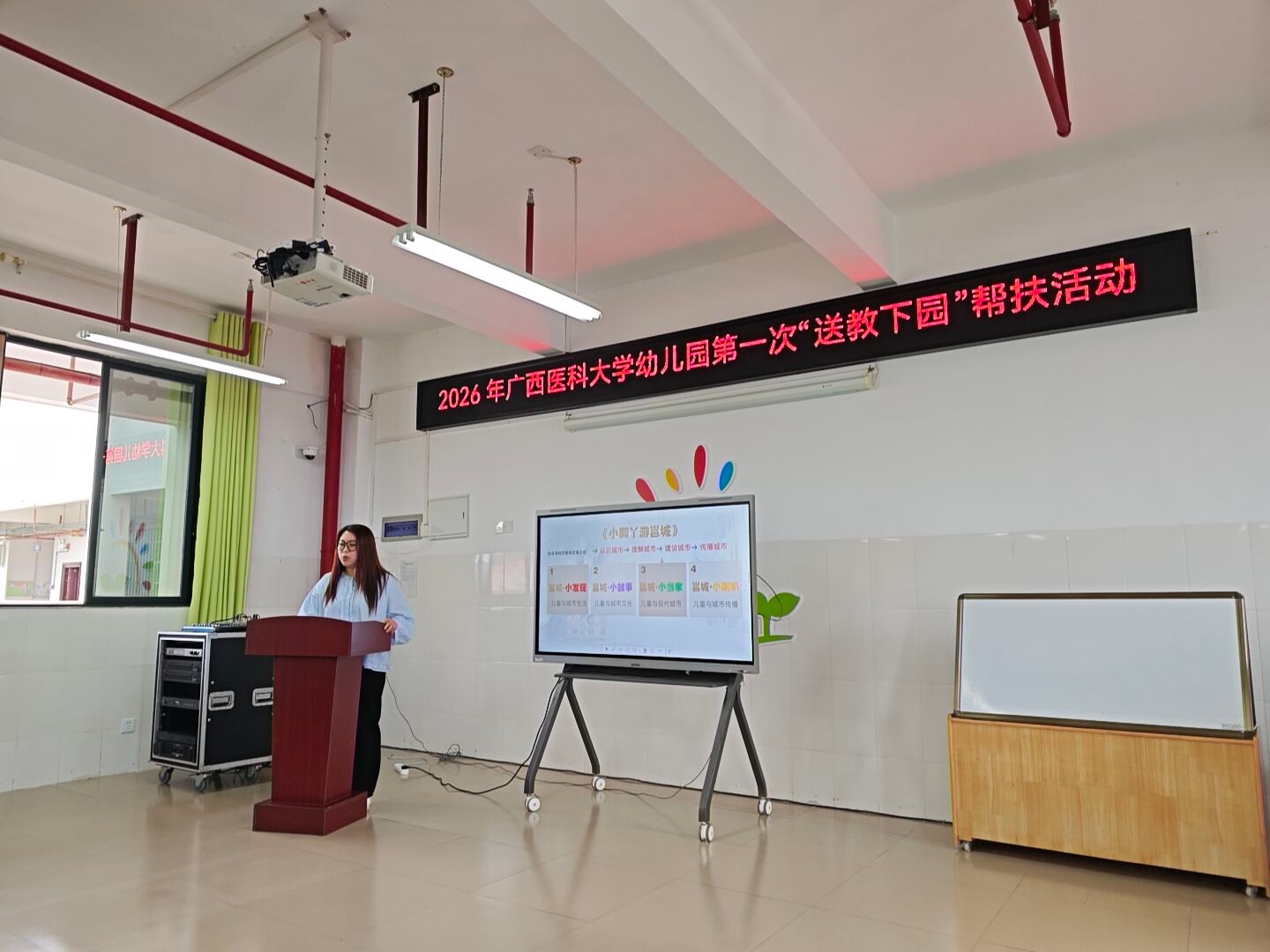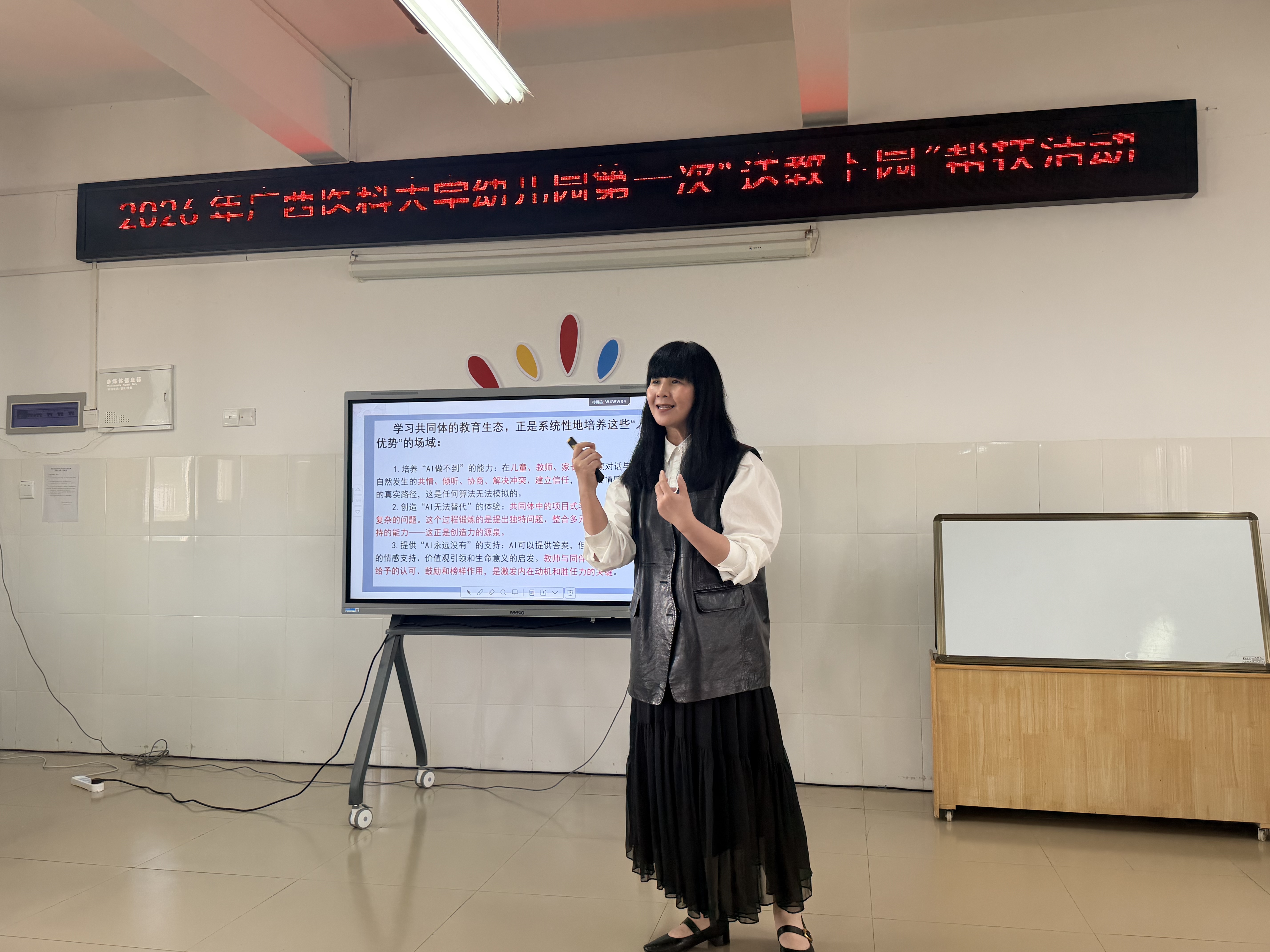 春风沐边关,幼教共前行。为深化广西边境地区教育结对帮扶,充分发挥优质学前教育资源的辐射引领作用,帮助受援园推进项目化学习落地实践,打造有温度有深度的特色班本课程,2026年3月23日至24日,我校幼儿园黄剑琴园长率骨干教师团队,赴凭祥市友谊镇中心幼儿园开展结对帮扶送教活动。