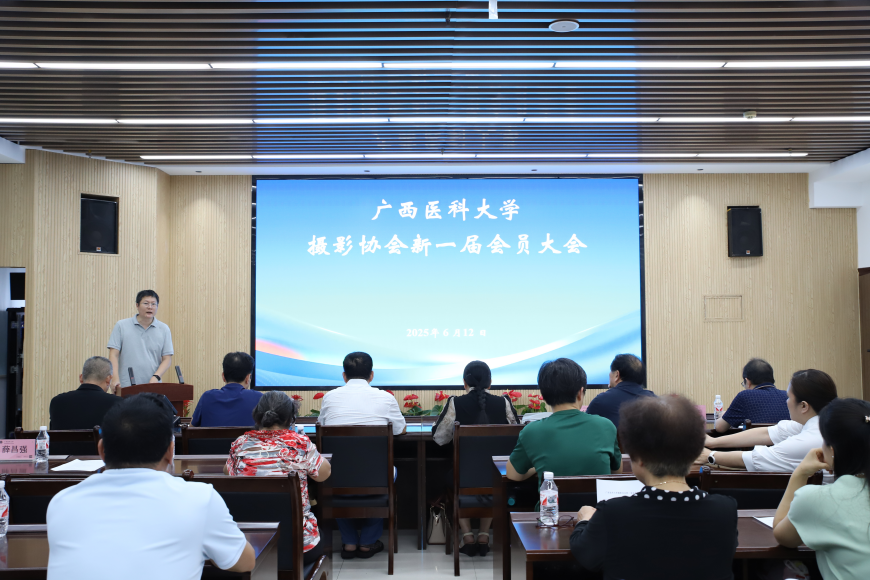 近日,广西医科大学教职工摄影协会新一届会员大会在校本部药基楼13楼会议室召开。校工会常务副主席吴树华、原摄影协会会长龙盛京教授、五象校区建设办常务副主任蔡瑜生、附属口腔医院党委副书记邝海出席会议,与摄影协会会员及摄影爱好者共同见证这一重要时刻。会议由药学院办公室主任李福森主持。