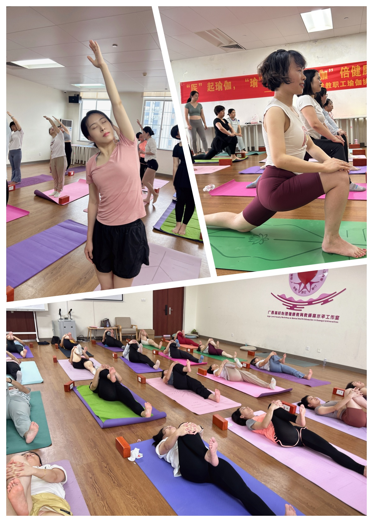 6月17日中午,我校教职工瑜伽协会在科技楼心理活动中心6楼626室成功开展了首场主题为“‘医’起瑜伽,‘瑜’悦身心,‘伽’倍健康”的瑜伽疗愈活动。活动吸引众多教职工踊跃参与,在专业瑜伽老师指导下开启身心放松之旅。