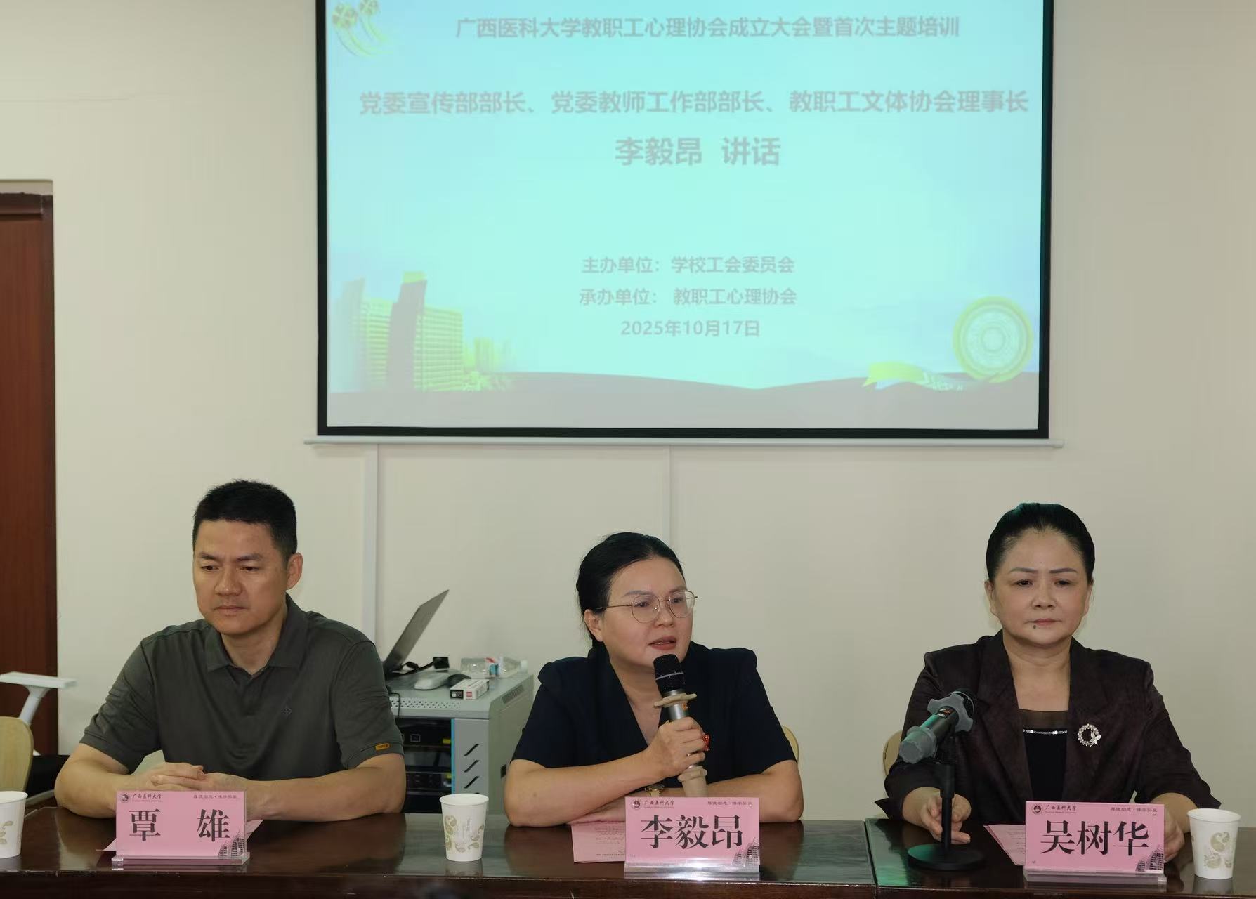 李毅昂强调,实现“建成立足广西、面向东盟、服务‘上合’的国内一流、国际著名医科大学”和实现“高质量发展、高水平安全、高效能治理、高素质队伍”等目标需要筑牢师生心理健康的基石;希望协会坚持“服务职工、融入校园、交叉融合”,把协会建设成为教职工温暖包容的心灵港湾。