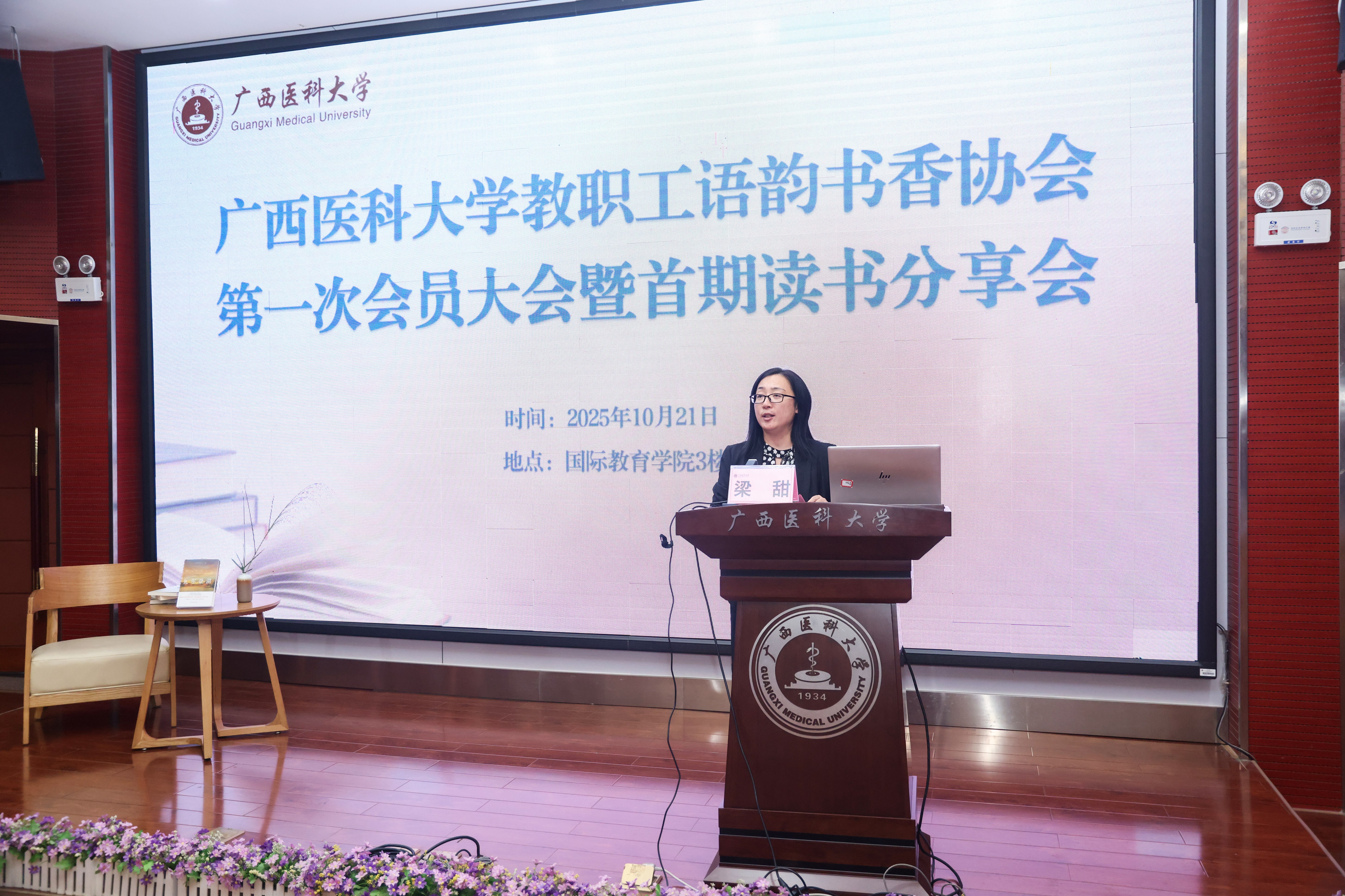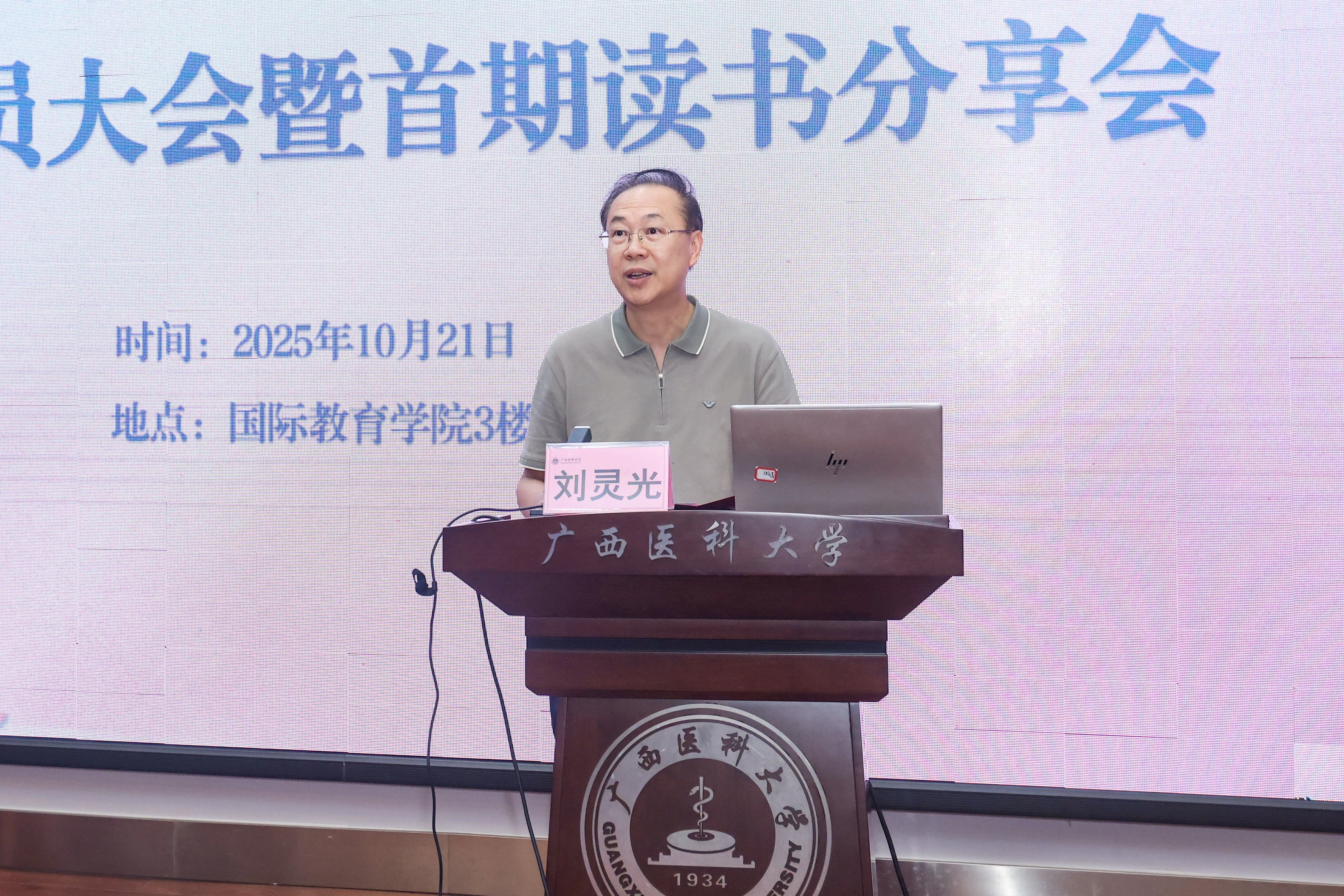刘灵光在致辞中对语韵书香协会的成立表示祝贺。他指出,校工会始终以服务教职工、促进教师发展为核心职责,希望各协会加强协作,共同搭建思想交流与智慧共享的平台,助力建设文明医大、和谐医大、幸福医大。