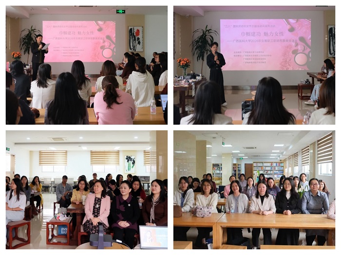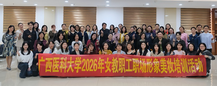 春风有信,花开有期。3月13日下午,“巾帼建功 魅力女性”——广西医科大学2026年女教职工职场形象美妆课堂,在校本部国际教育学院四楼阅览室顺利举行。活动由校工会主办、教职工风尚美学协会协办,协会会长梁步敏主持,校工会常务副主席吴树华致辞,近百名女教职工踊跃参与。