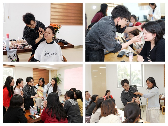 吴树华向辛勤耕耘在学校各岗位的女教职工致以问候,感谢全体女教职工为学校高质量发展作出的重要贡献。她表示,美是专业的外在彰显,更是自信的内在表达,本次美妆课堂是学校关爱女教职工、丰富其精神文化生活的具体举措,希望女教职工们在忙碌工作之余,学会呵护自我、提升自我,以自信优雅的风采平衡职场担当与生活之美,在岗位上巾帼建功、绽放芳华,为学校高质量发展贡献巾帼力量。