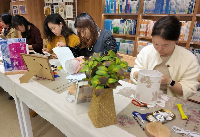 为庆祝“三八”国际劳动妇女节,丰富女职工精神文化生活,关注女性身心健康,3月13日中午,图书馆分工会组织全体女职工开展以“书香润心,巧手筑梦”为主题的女性健康与美育实践活动,将健康知识分享与手工创作相结合,让女职工在轻松愉悦的氛围中度过专属节日。